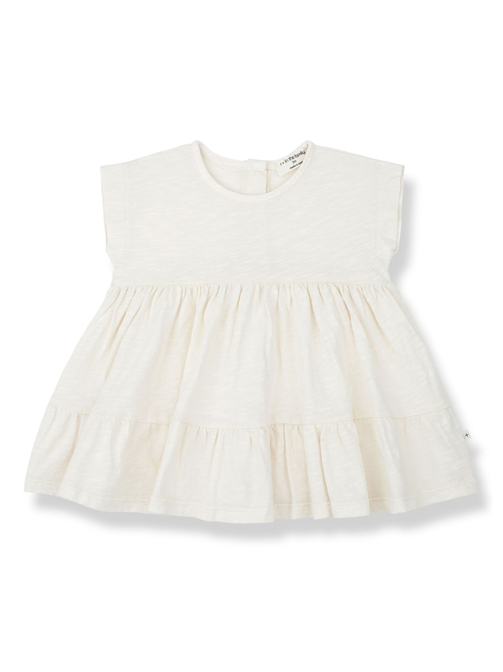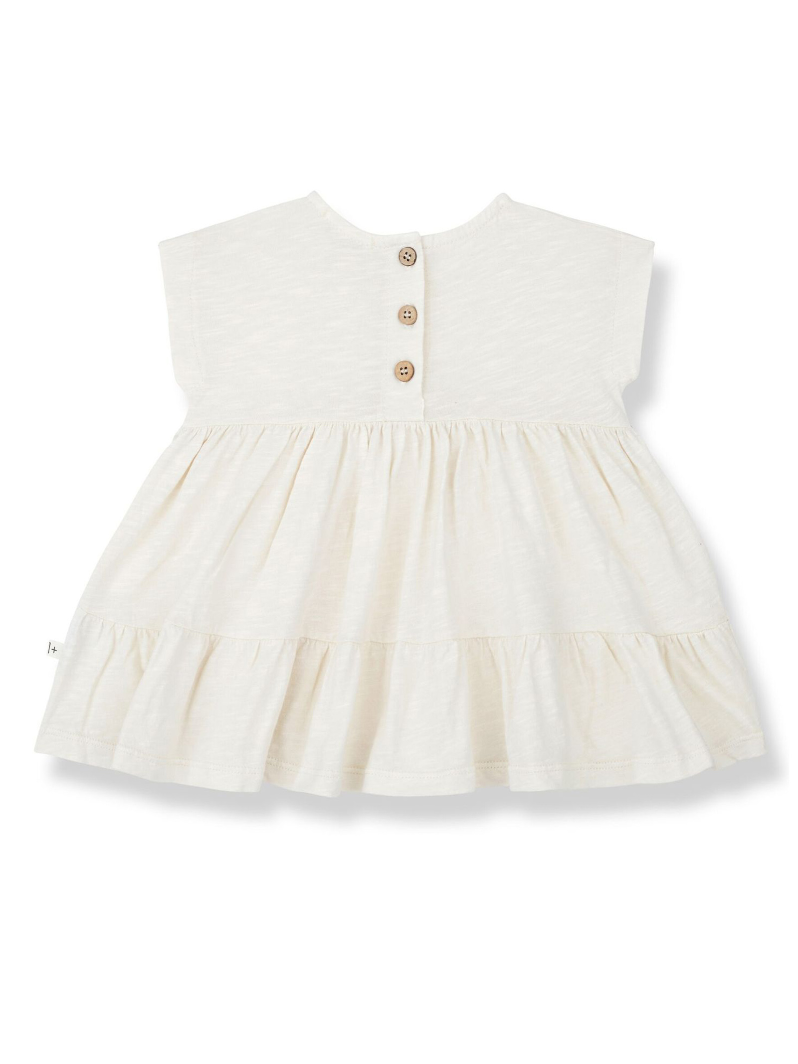 Ivory cotton Antonella dress, round neck, sleeveless, back button closure