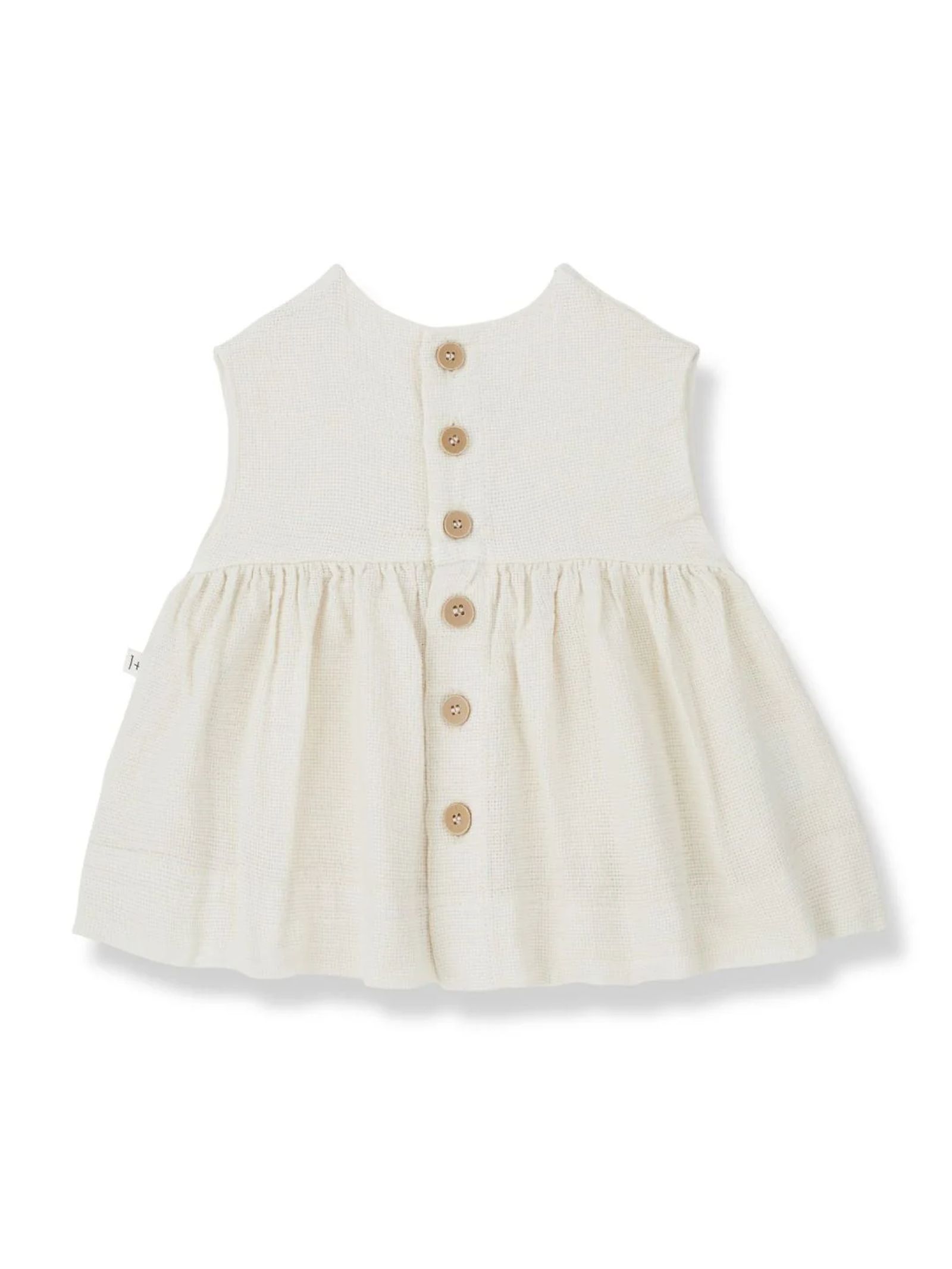 Patrizia ivory cotton dress with back button closure, sleeveless, crew neck