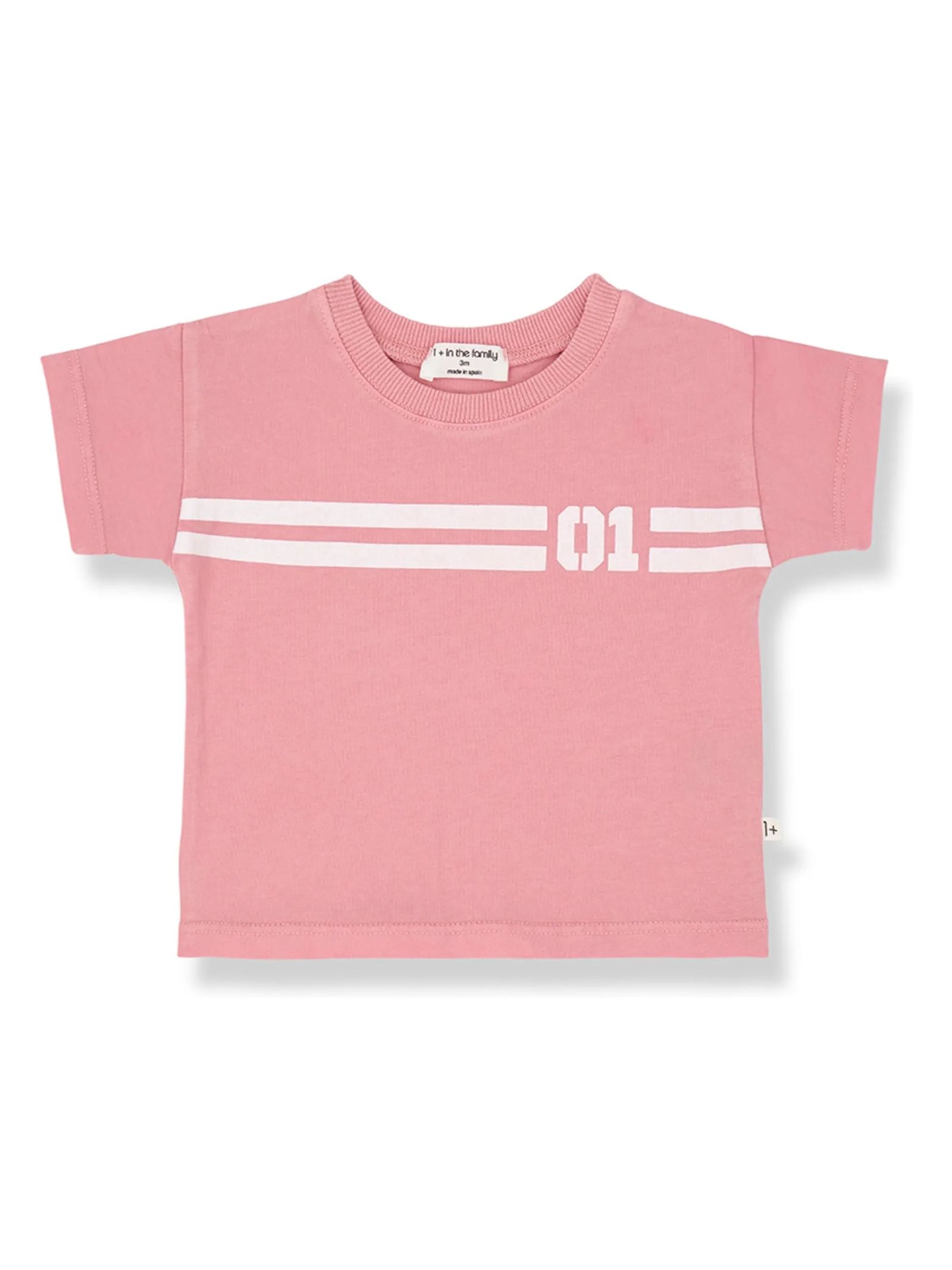 Pink cotton T-shirt with T-shaped sleeves and a ribbed crew neck