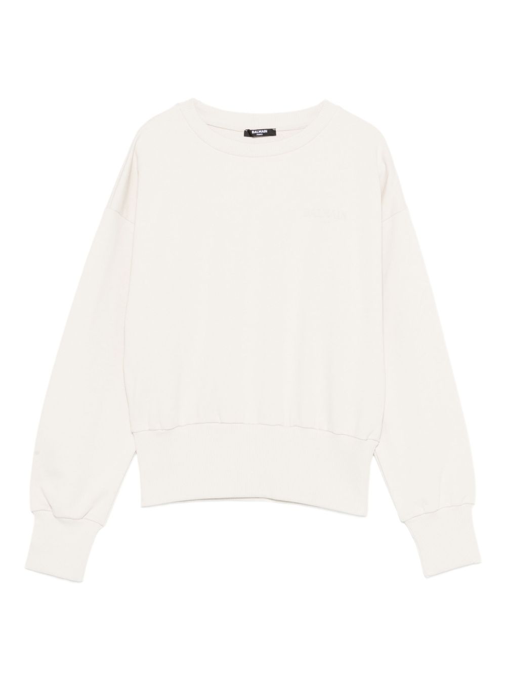 beige embroidered logo ribbed hem long sleeves round neck cotton
