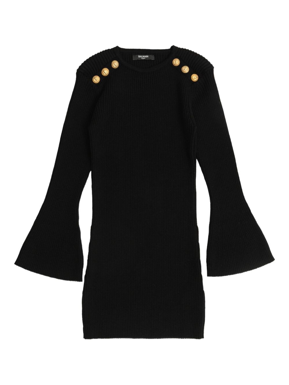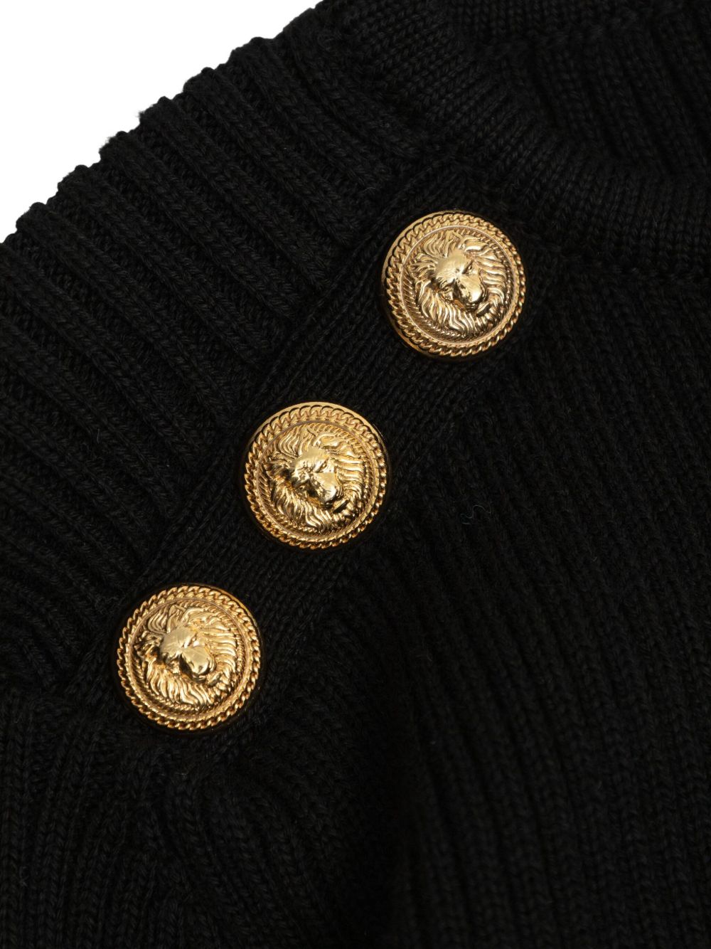 black ribbed knit bell sleeves round neck lion head buttons long sleeves