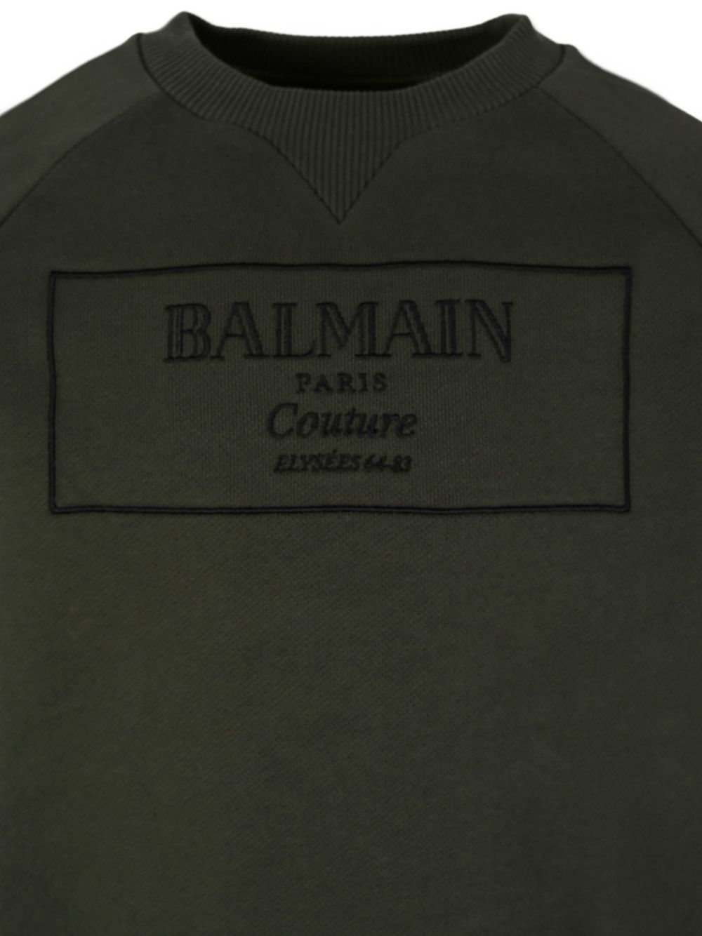 green organic cotton long raglan sleeves crew neck embroidered logo