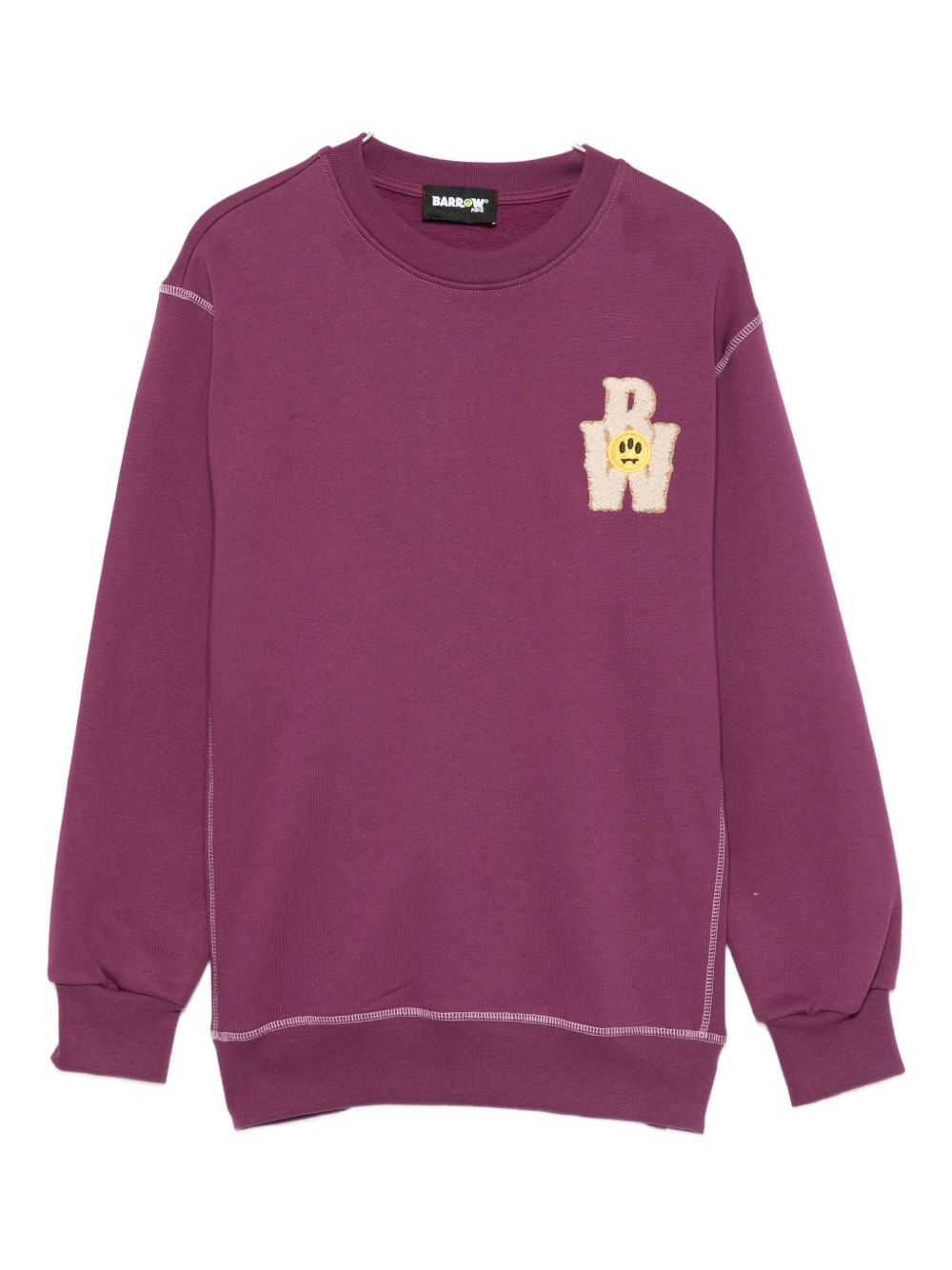 dark purple logo patch crew neck long sleeves ribbed cuffs teddy bear print