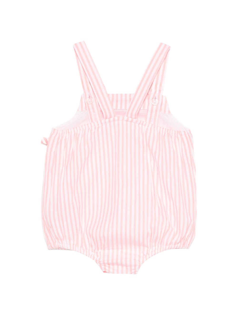 pink and white striped heart appliqué ruffled trim shoulder straps elasticated hem