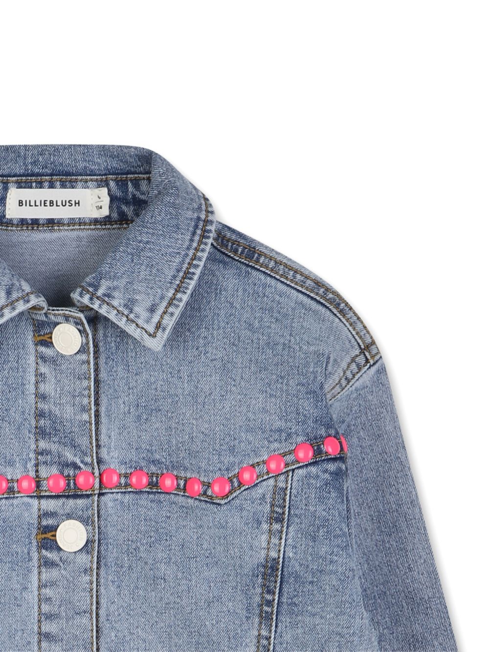 light blue sequin embellishment bead embellishment button fastening long sleeves point collar