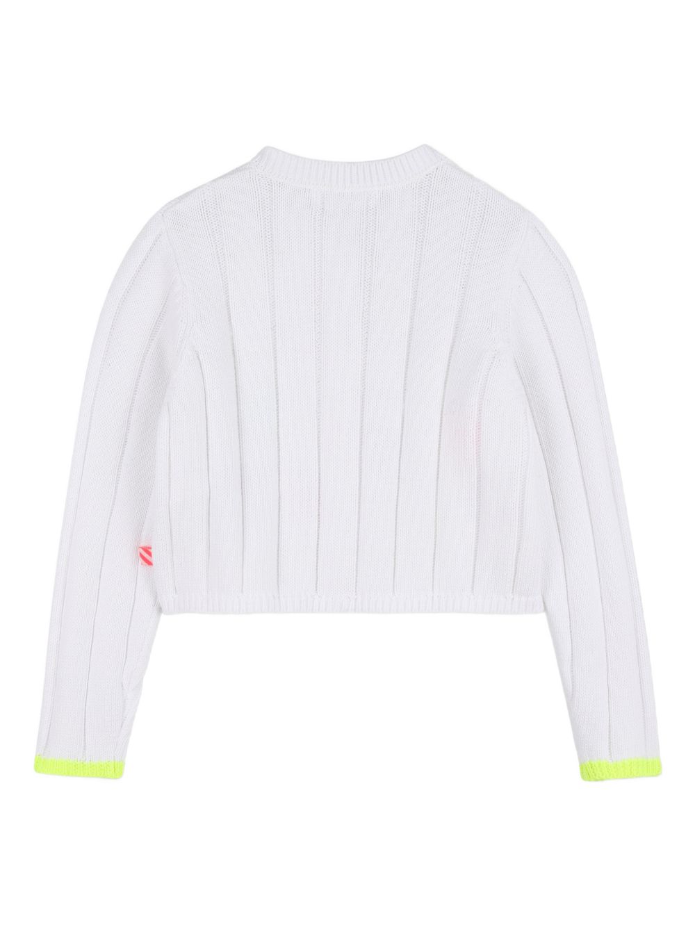 white ribbed knit round neck button fastening long sleeves embroidered motif