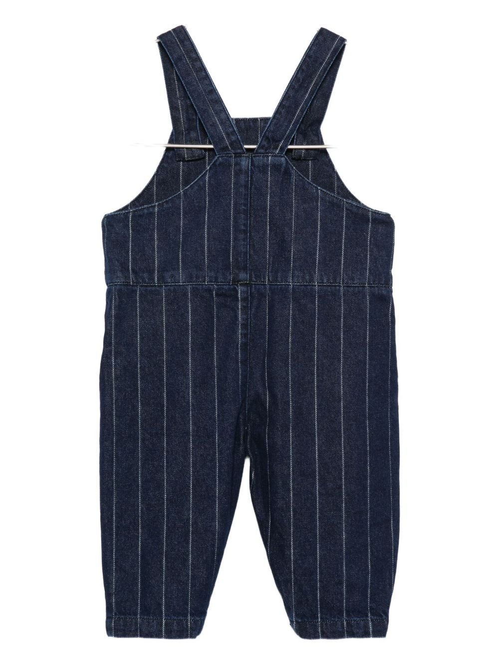 blue pinstripe pattern train appliqué button fastening adjustable straps