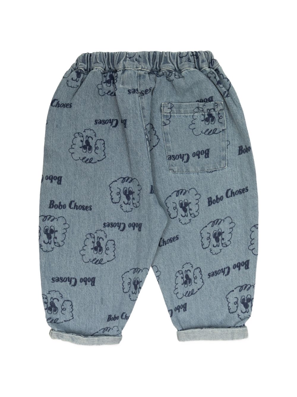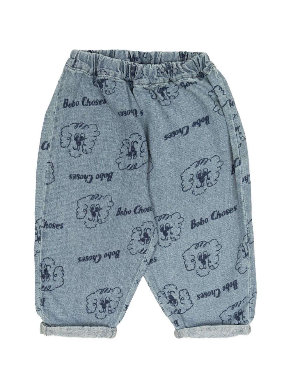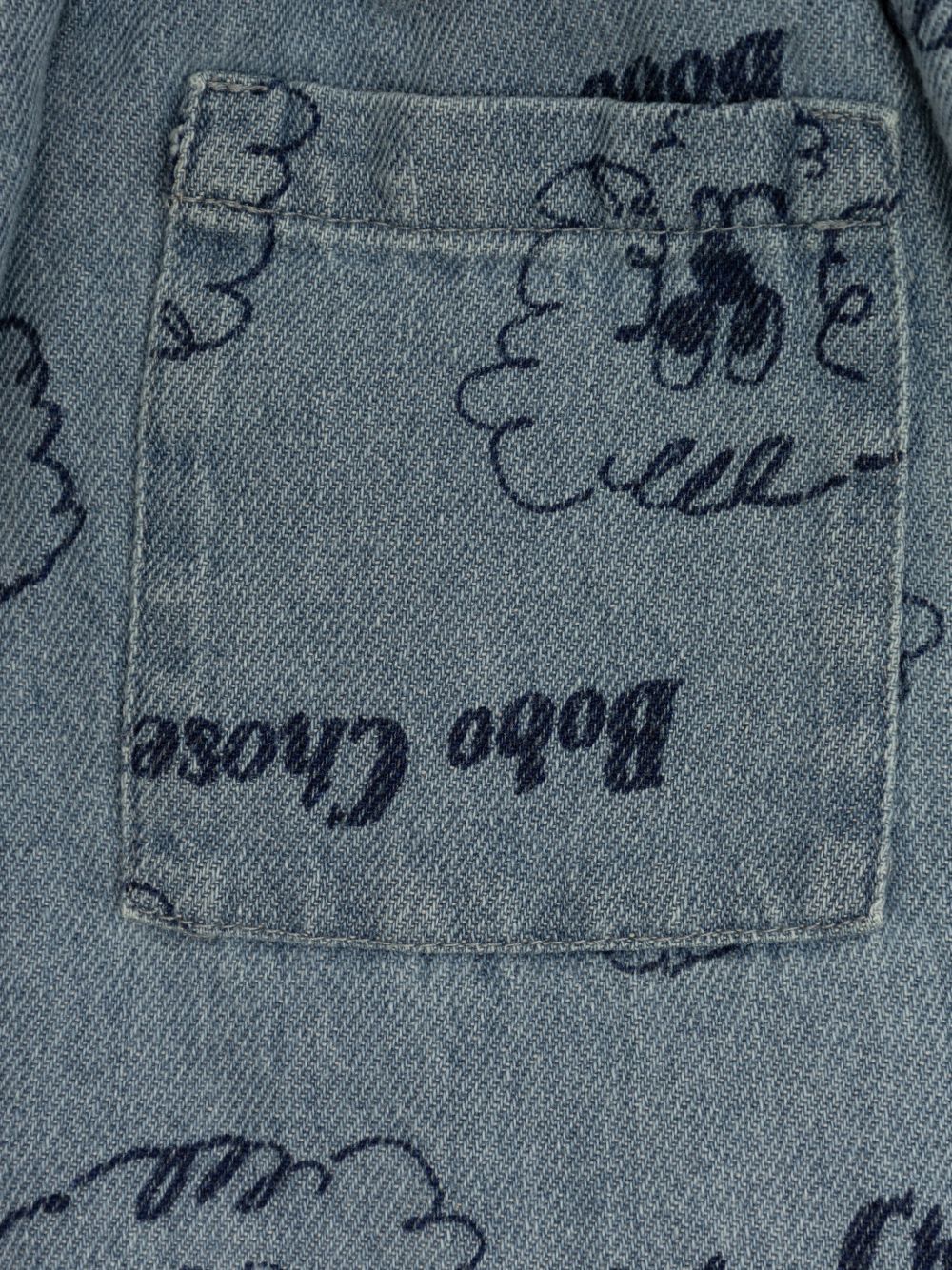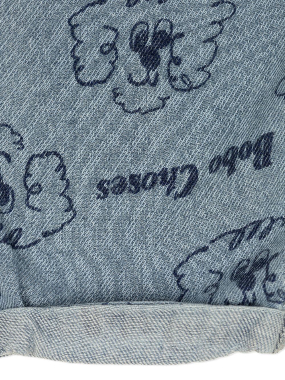 sky blue all-over graphic print elasticated waistband rear patch pocket rolled cuffs