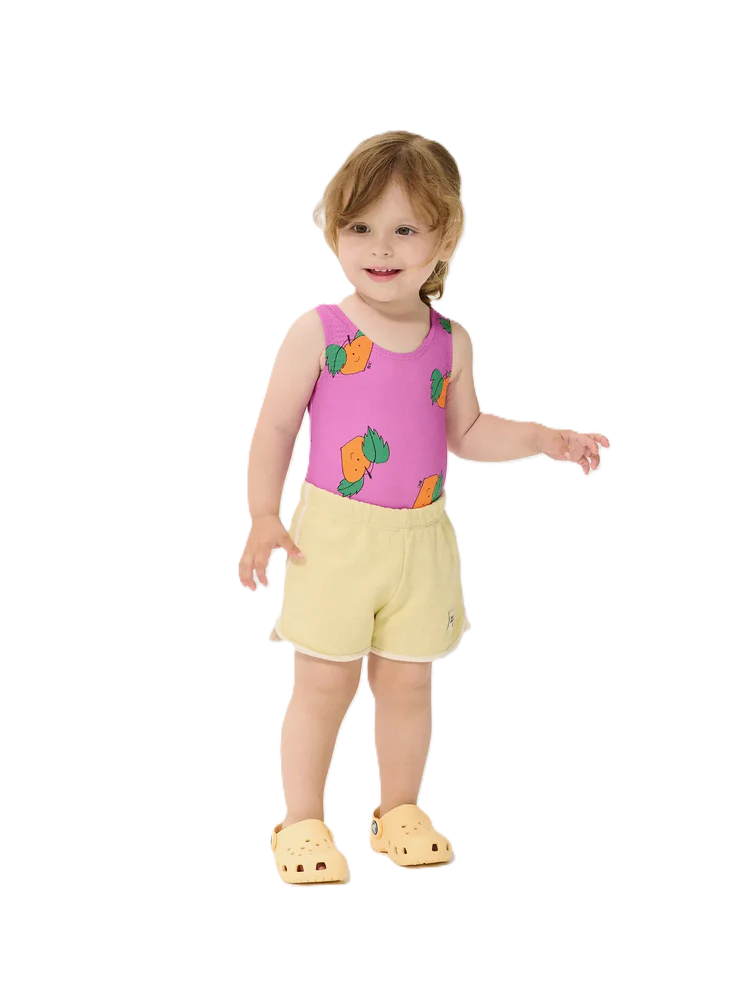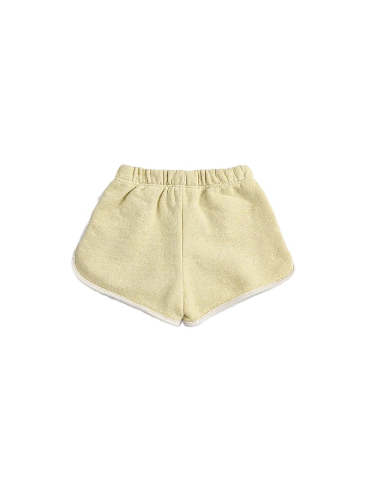 Yellow shorts. Designed with elasticated waistband, patch, short, fleece and relaxed fit.