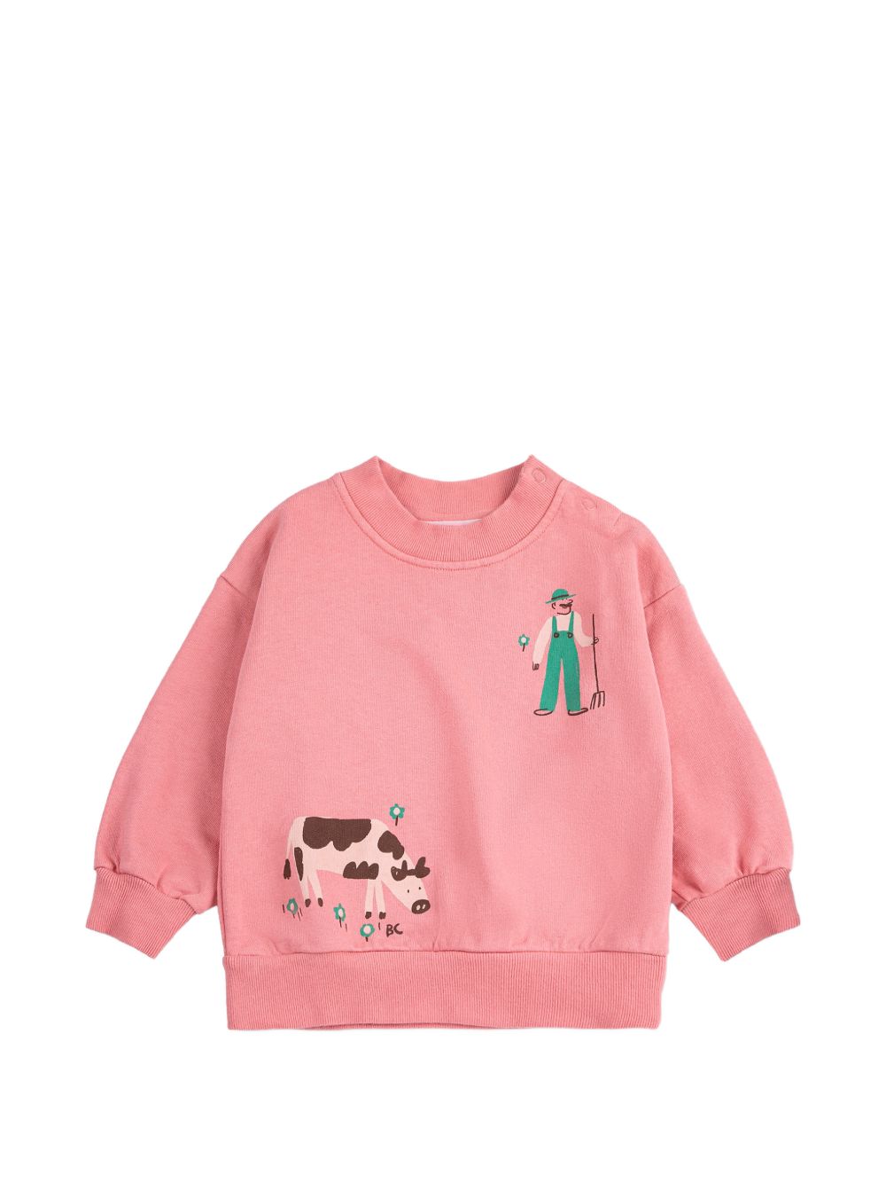 pink graphic print crew neck long sleeves snap-button fastening at the shoulder