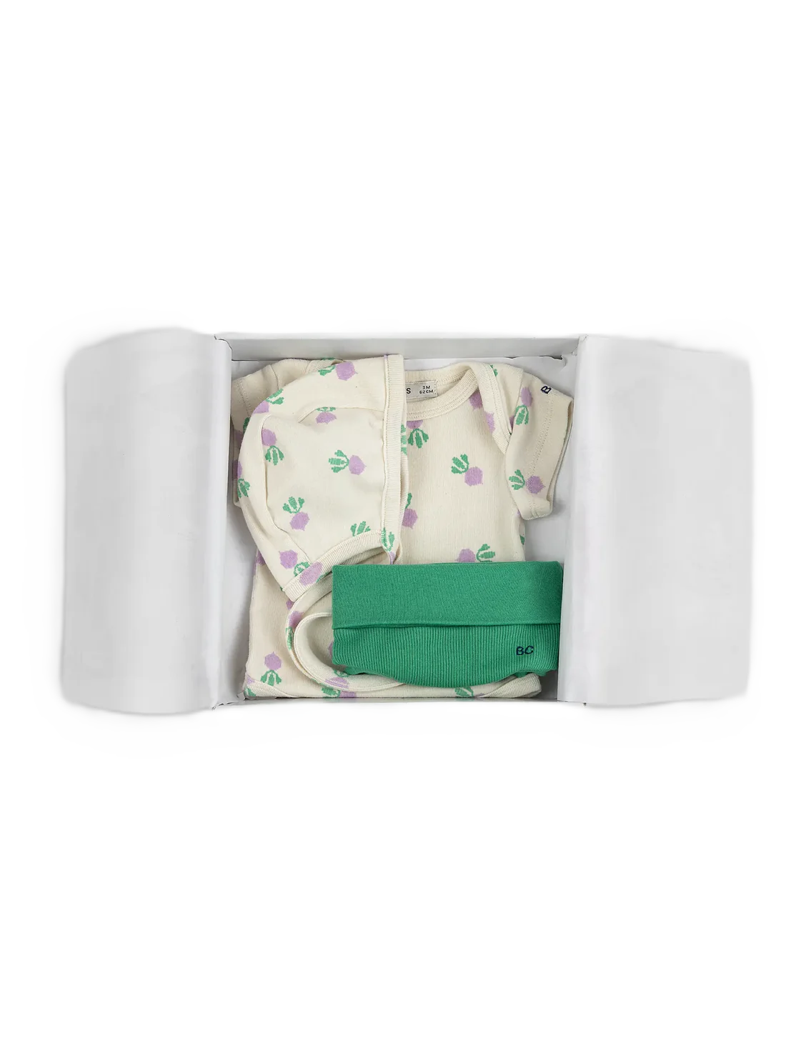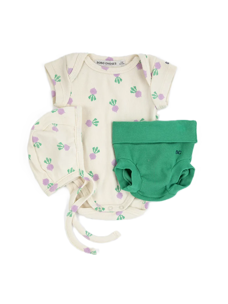 Green pack. Designed with short sleeves, crotch snap fastening, elasticated waistband, embroidery, slim fit and envelope neck.