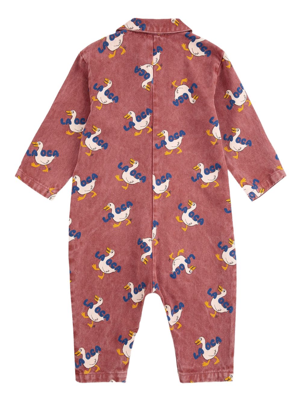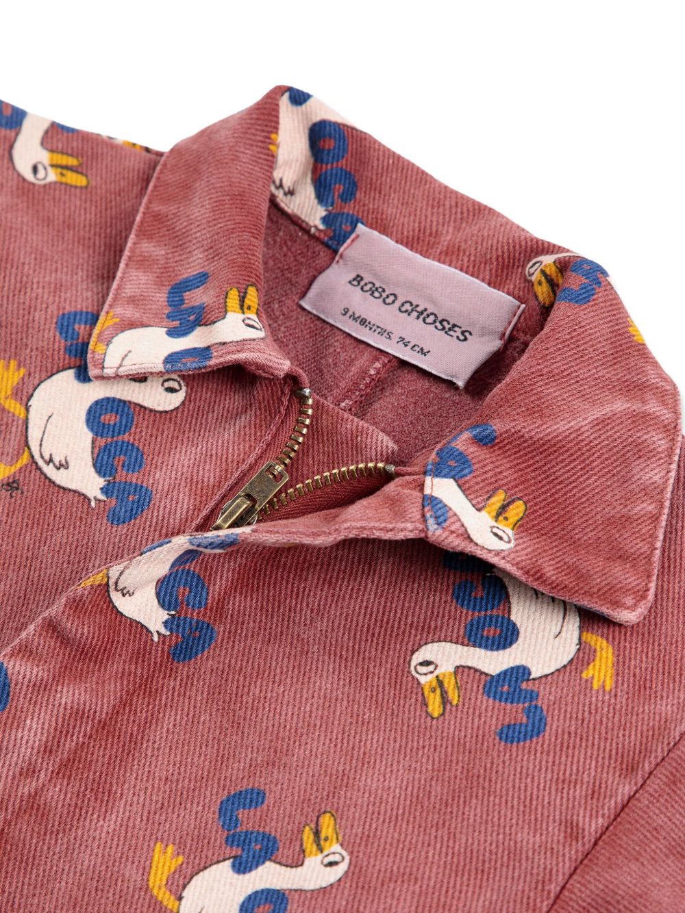 dusty red duck print collared neckline zip fastening long sleeves buttoned cuffs front patch pockets