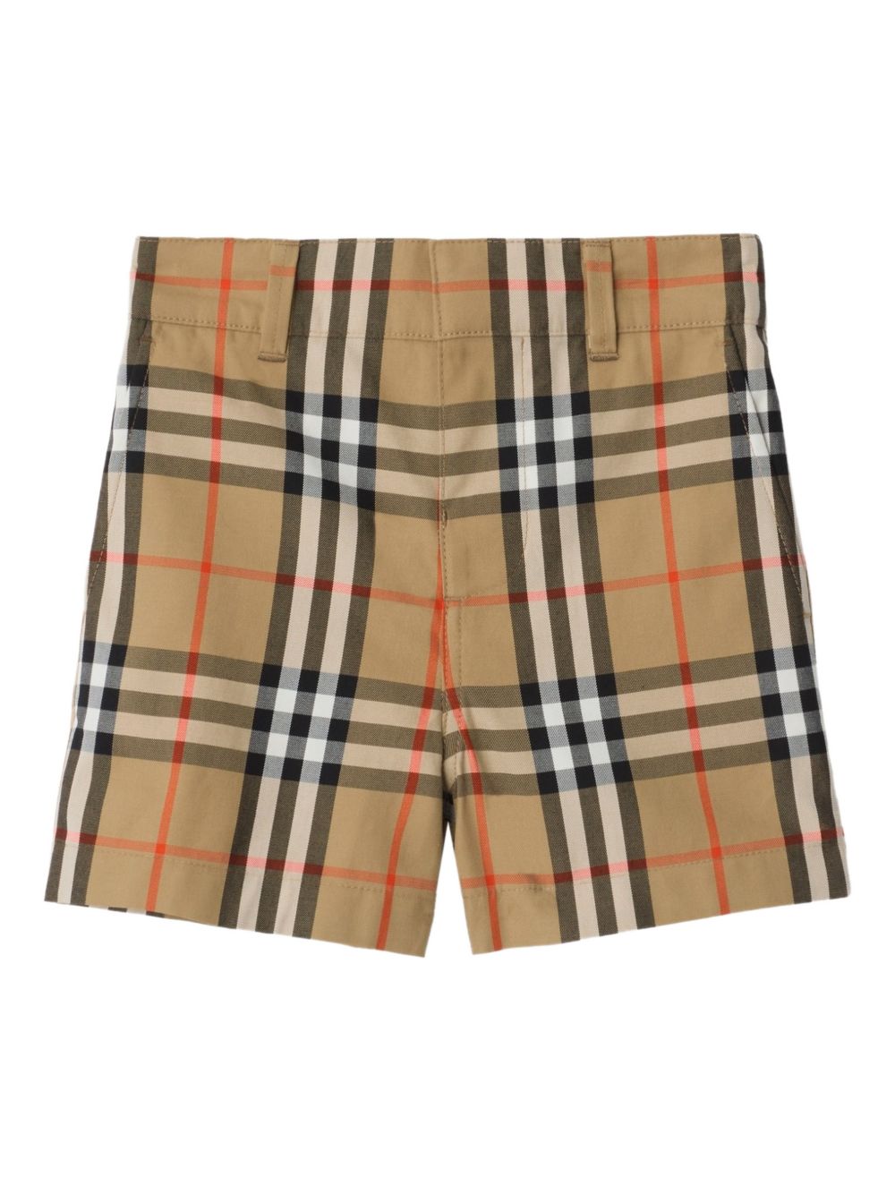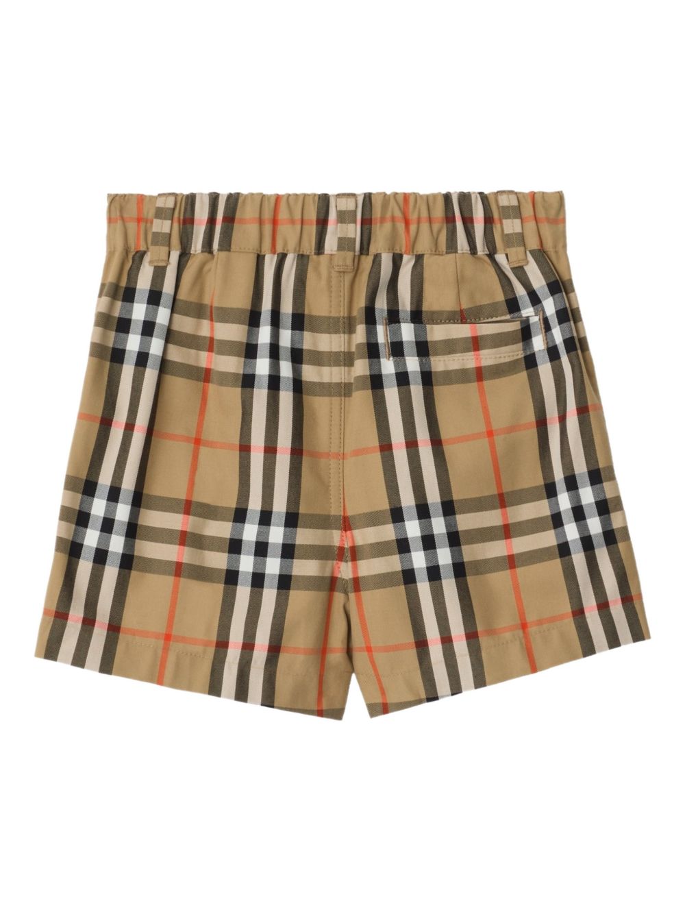 beige check pattern hook closure elasticated waist side pockets back welt pocket