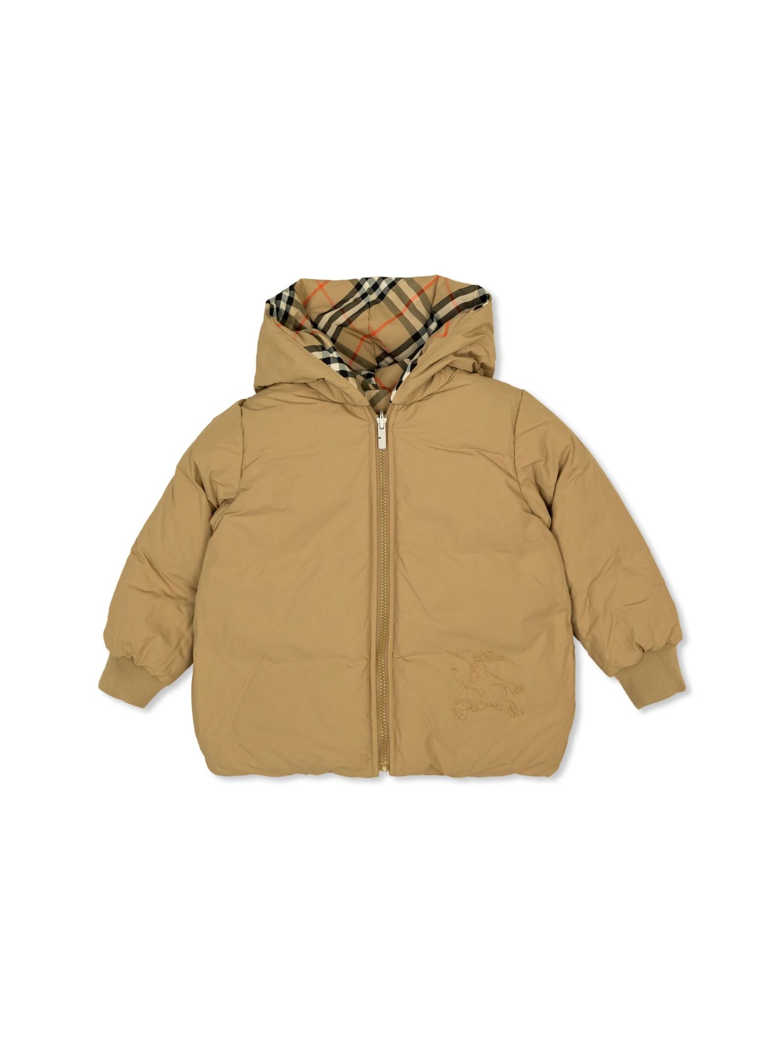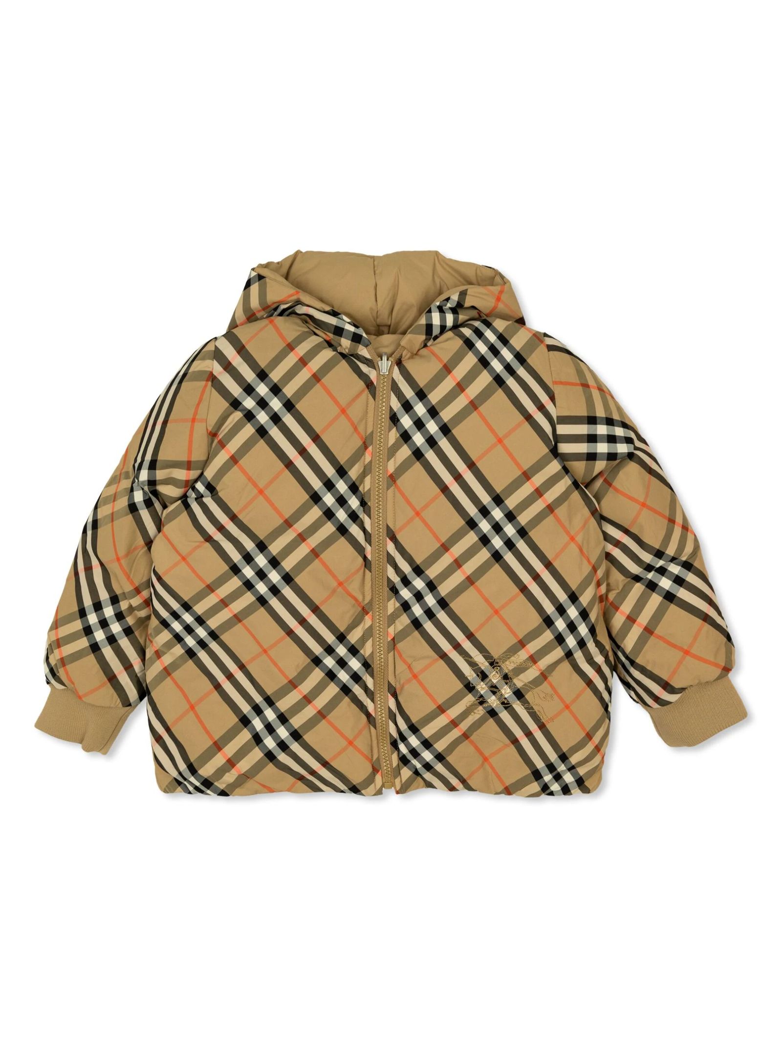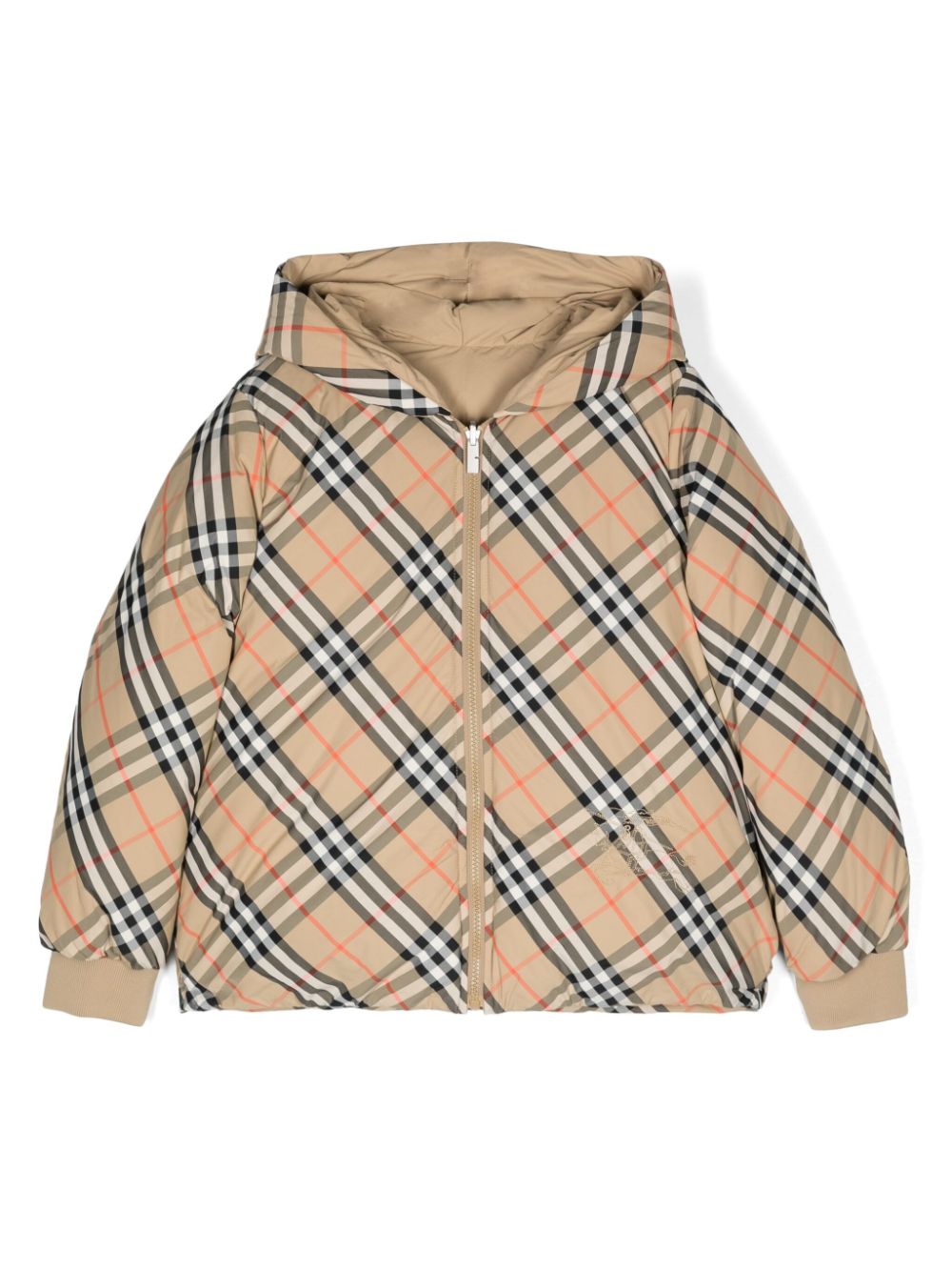 reversible polyamide jacketcheck patternlong sleevesfront zip fasteningelasticated cuffsclassic hoodreversible