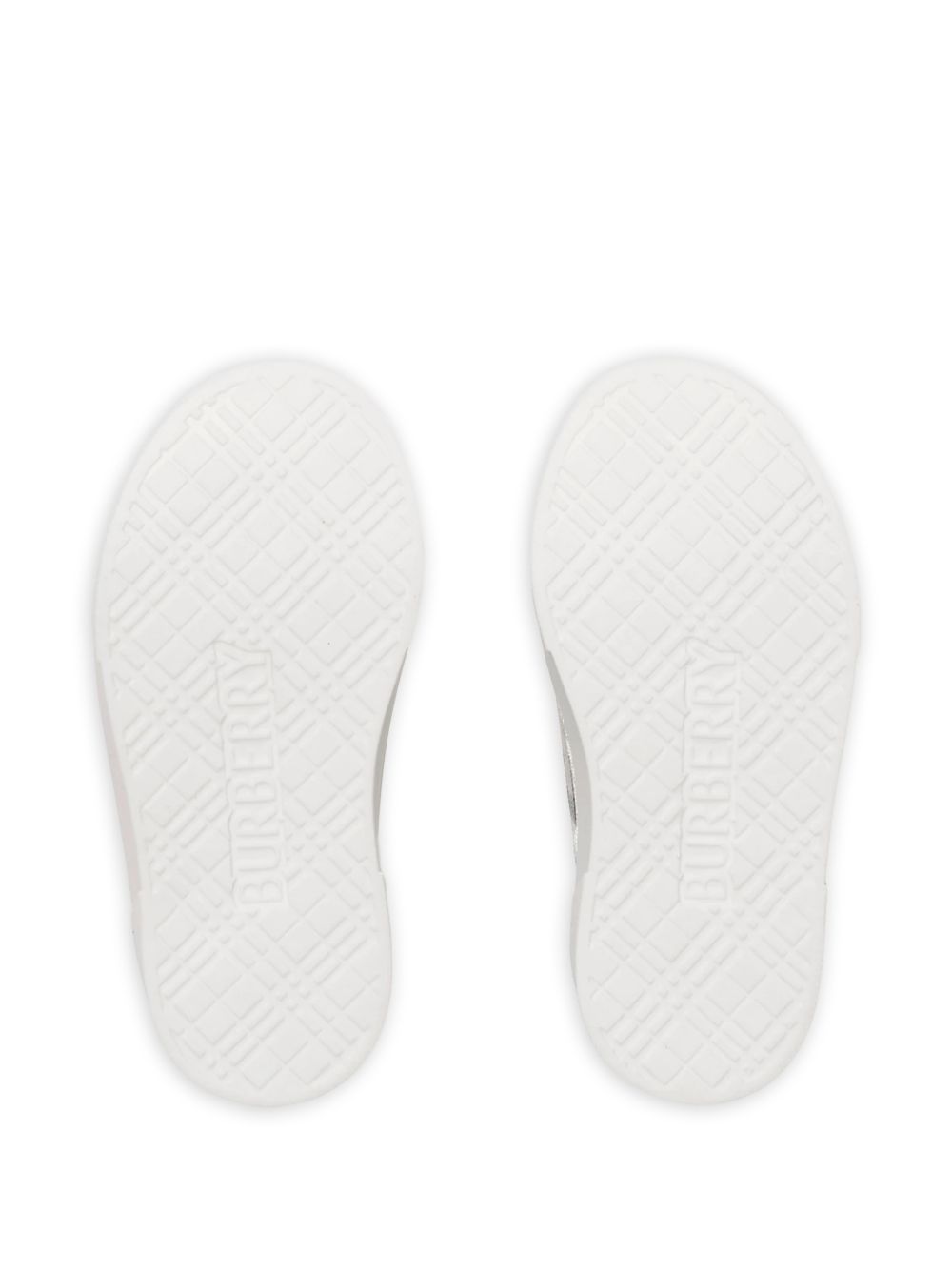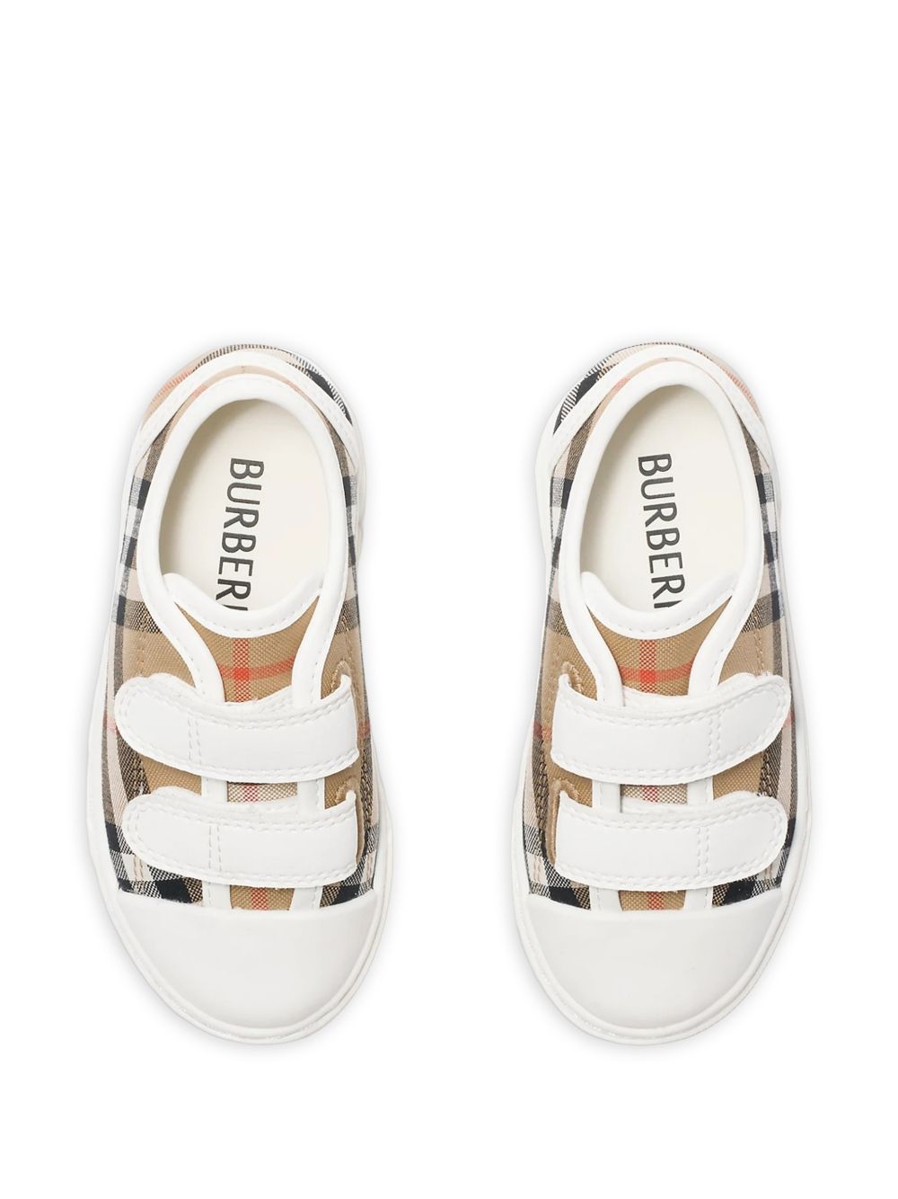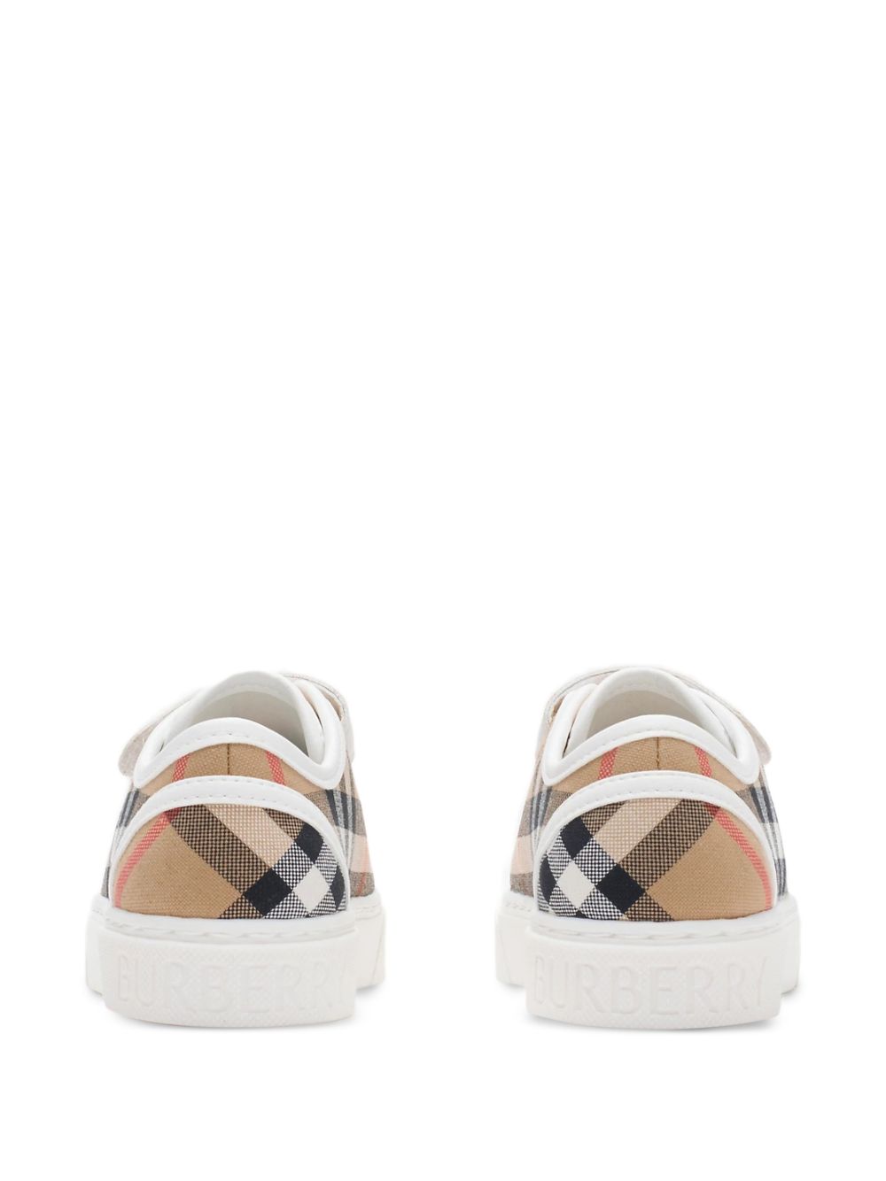 beige and multicolour check pattern strap fastening round toe contrast sole