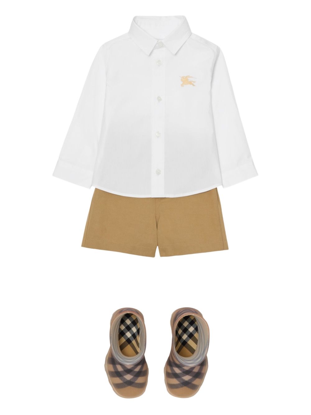 white cotton-blend point collar button closure single-button cuffs embroidered Equestrian Knight design