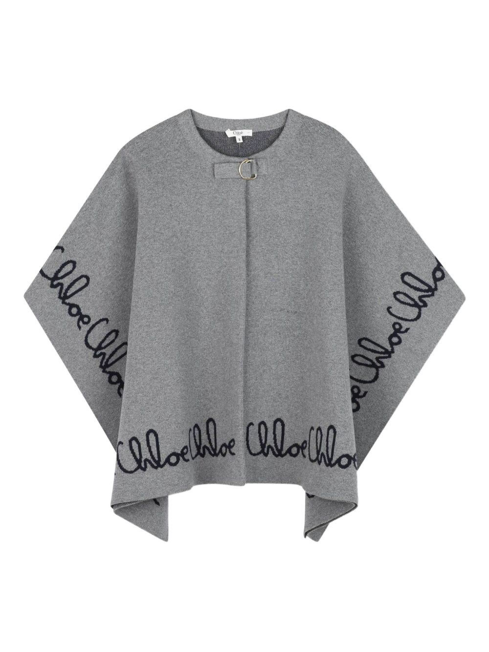 grey embroidered logo detailing strap and ring fastening wide sleeves open front