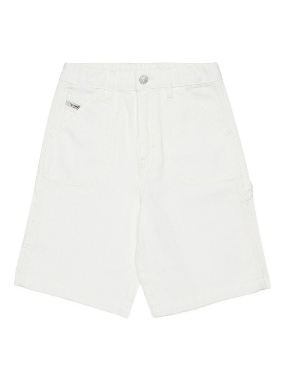 white appliqué logo patch pockets button and zip closure