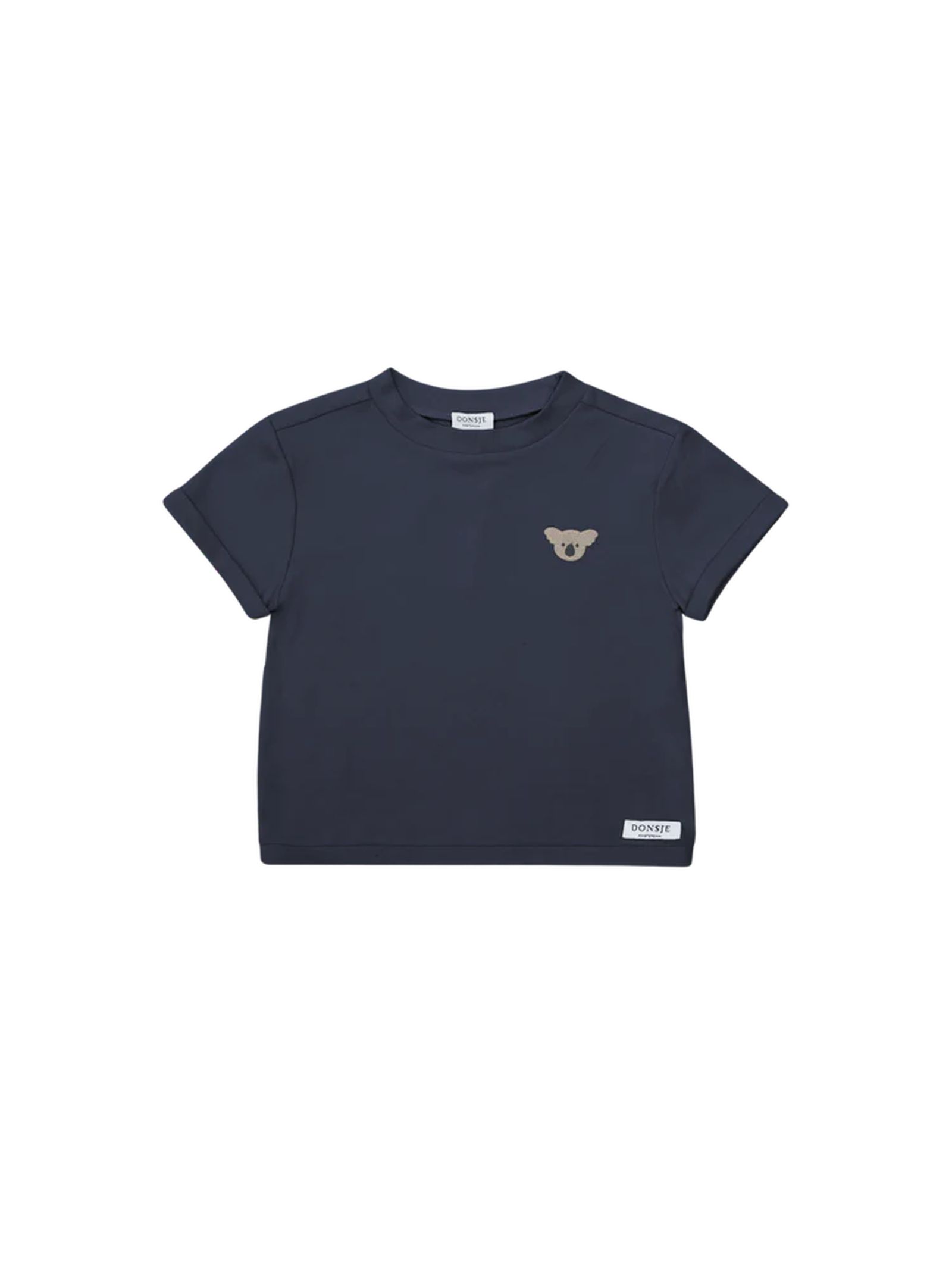 Blue cotton T-shirt featuring short sleeves, crewneck, front Koala embroidered, 100% Organic cotton
