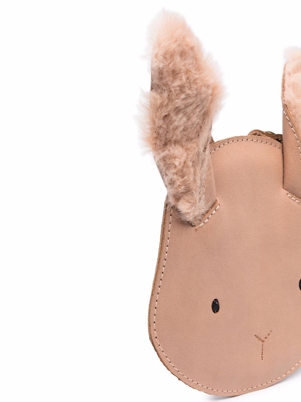 light rust brown leather faux-fur trim contrast stitching pop-up animal ears single shoulder strap rear zip-fastening pocket