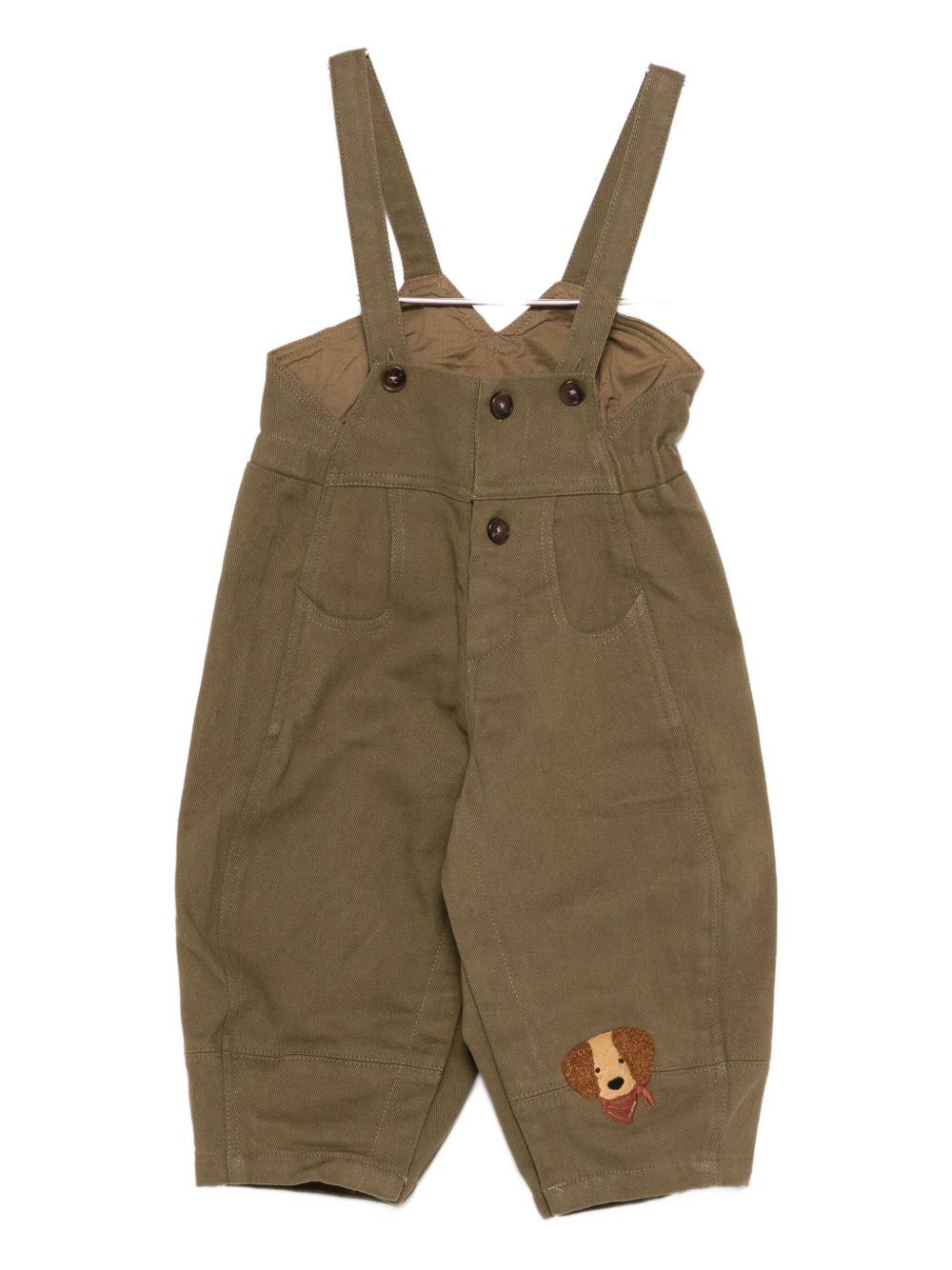 green button fastening dog embroidery flat front