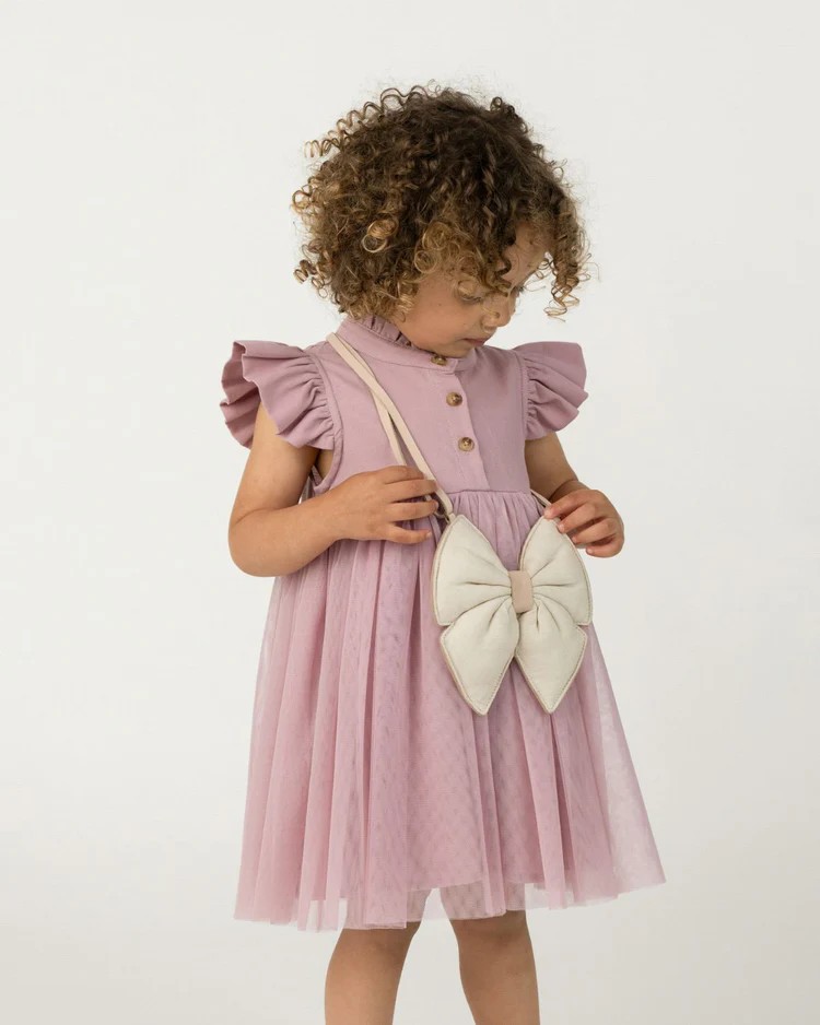 What a bow-tiful day! Designed for small hands and big imaginations, the Klasina Purse is the perfect companion for treasured finds and everyday play. With its charming bow design, just-right size, adjustable shoulder strap, and a back zip fastening, it brings a sprinkle of magic to any outfitready to carry secrets, sweets, and stories wherever they go. L: 10 cm x W:13 cm.
