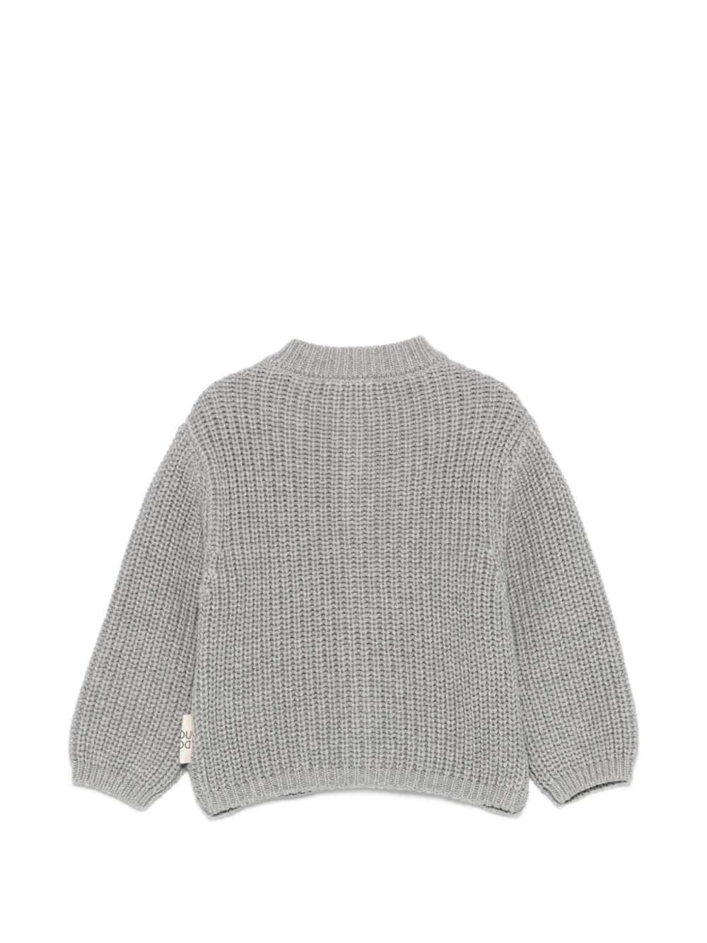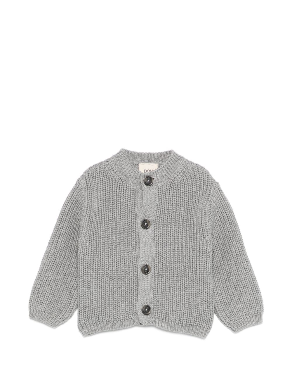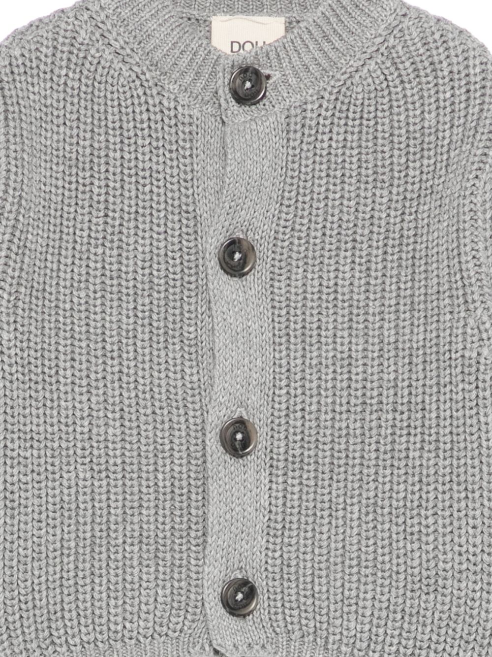 grey button fastening knitted construction round neck long sleeves