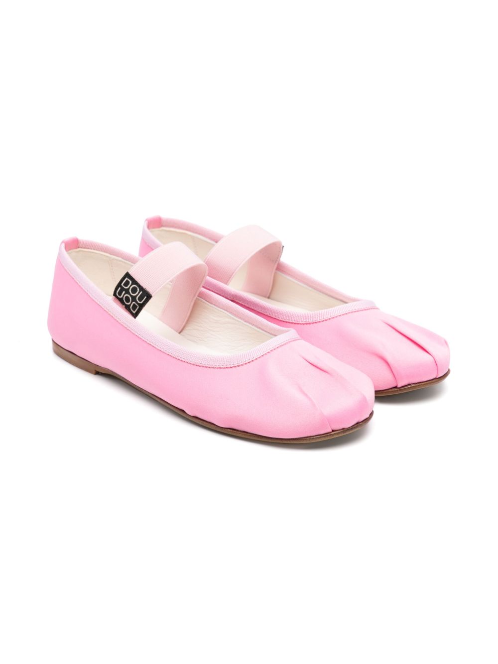 flamingo pink elasticated strap branded insole flat sole logo tag