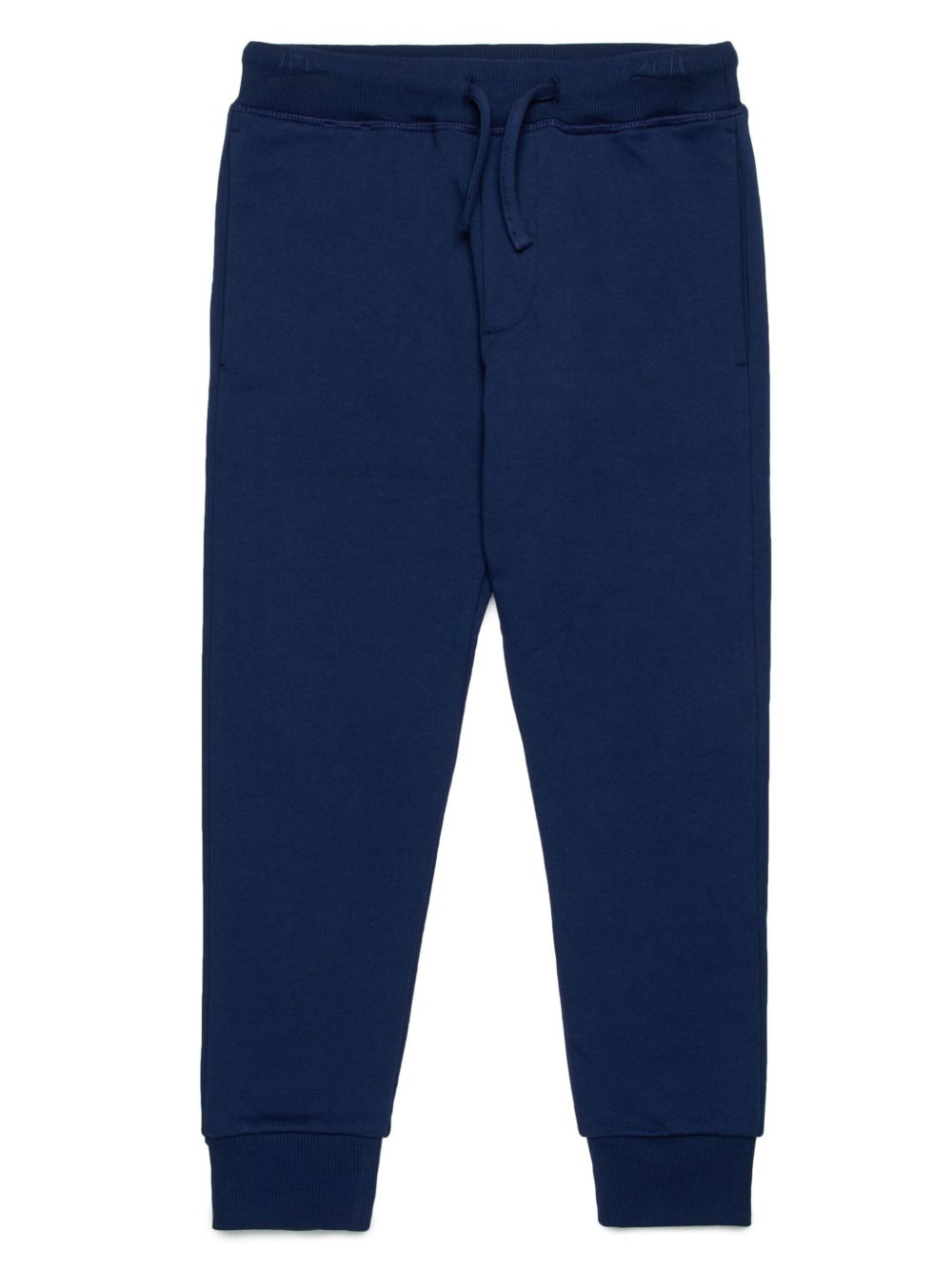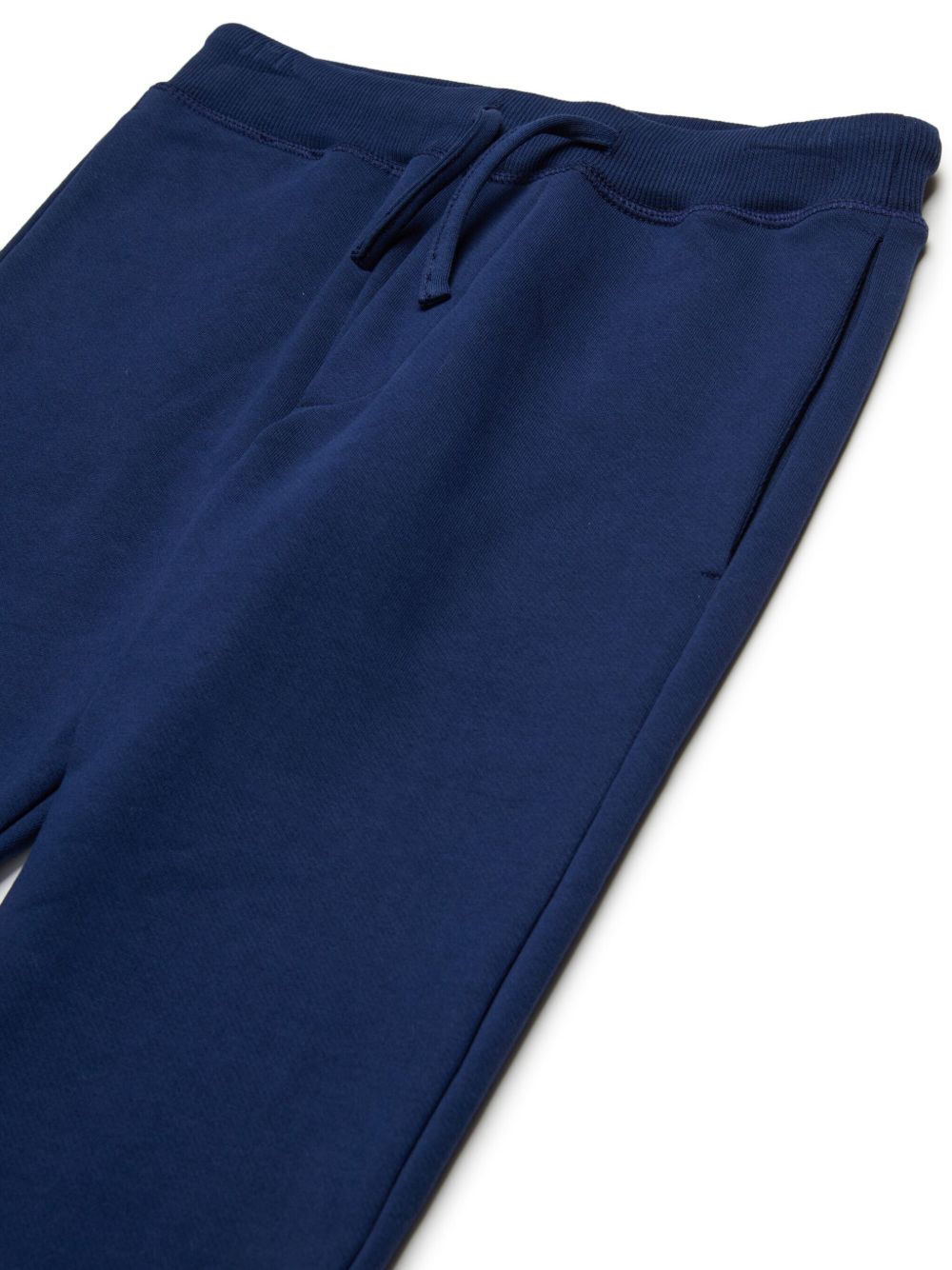 navy blue elasticated drawstring waistband slip pockets to the sides straight leg