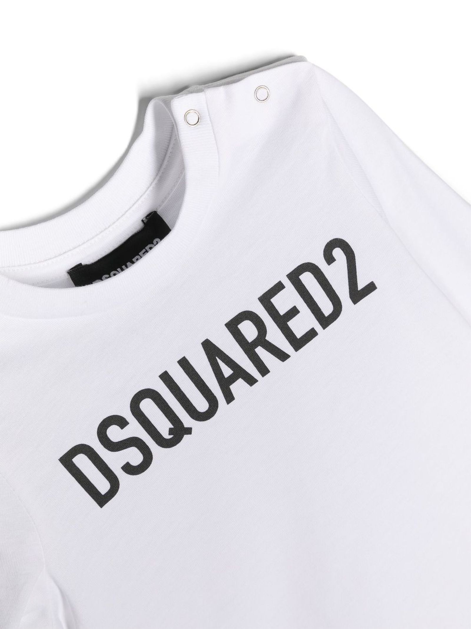 White cotton T-shirt featuring logo print to the front, round neck, side clip fastening, long sleeves, straight hem