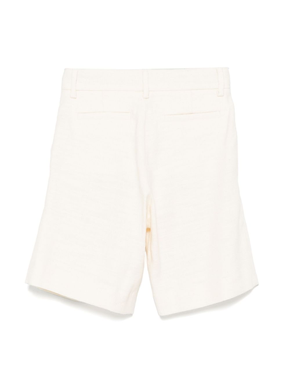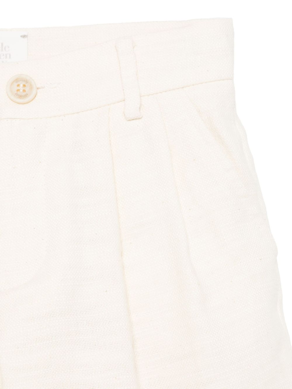 ecru concealed fly and button fastening belt loops two diagonal pockets to the sides two rear welt pockets