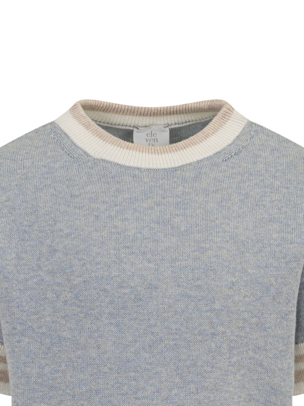 blue striped short sleeves round neck ribbed trim