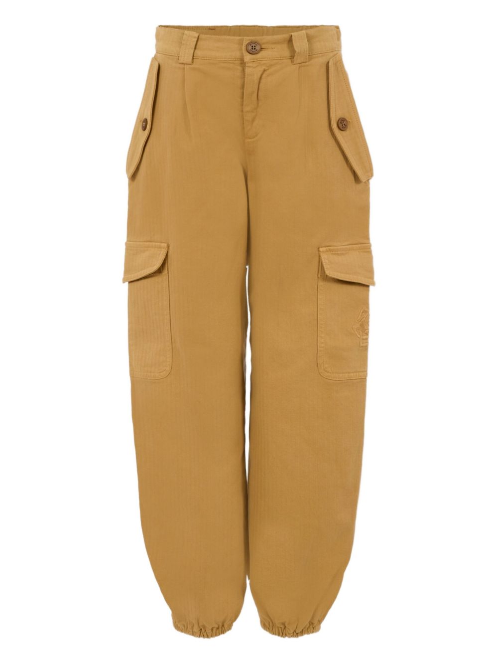 beige cargo pockets elasticated cuffs embroidered detail button fastening