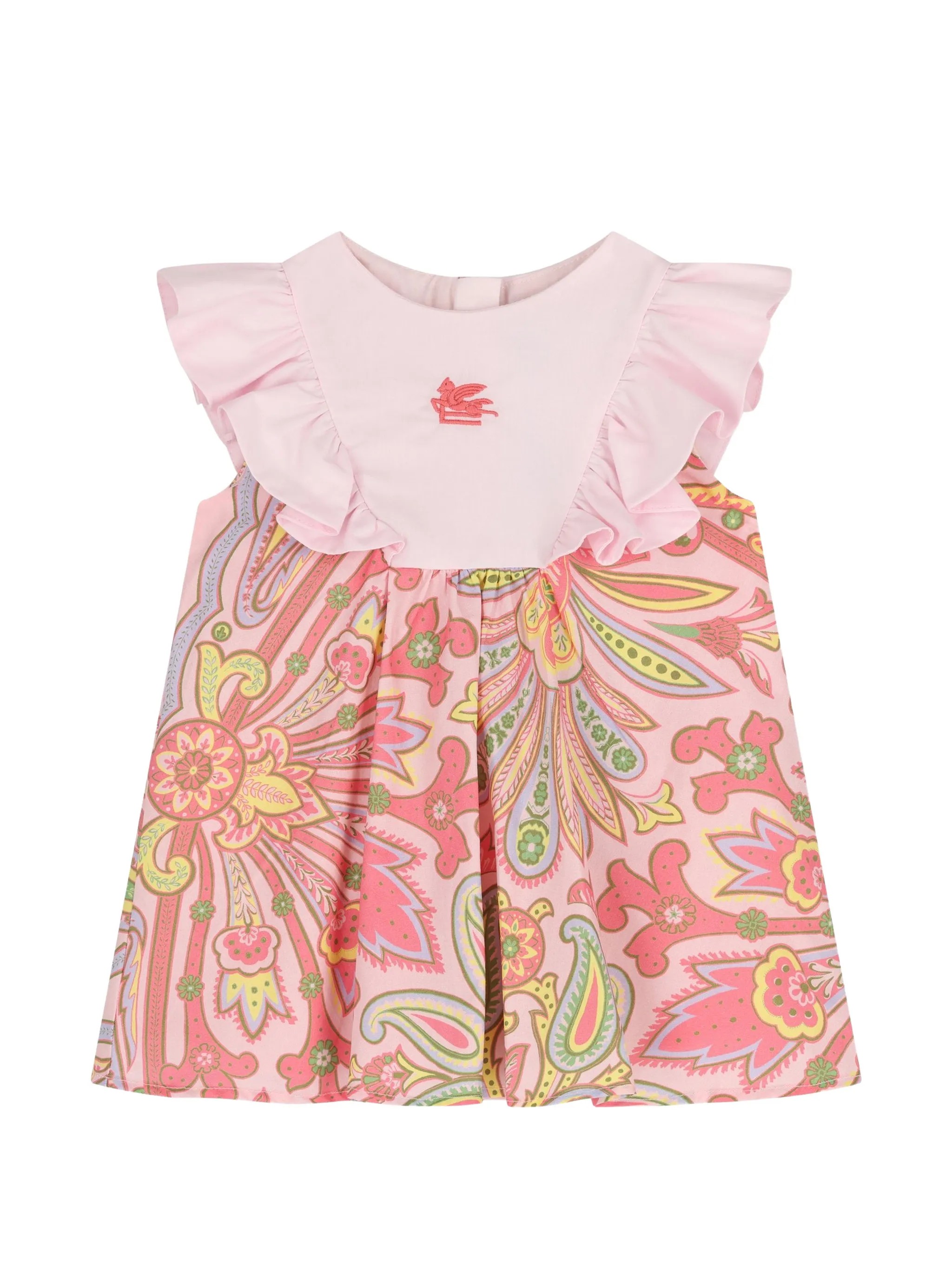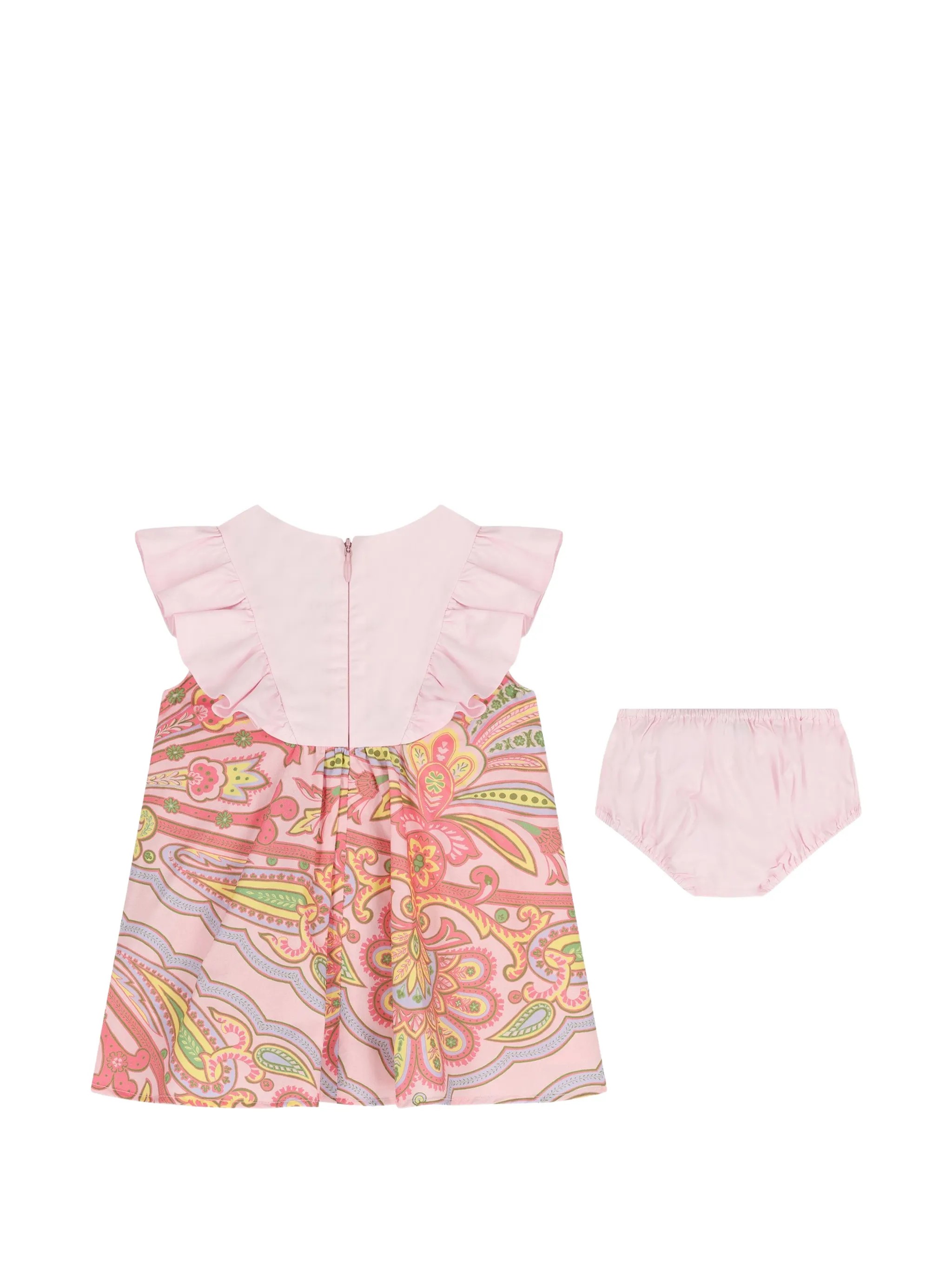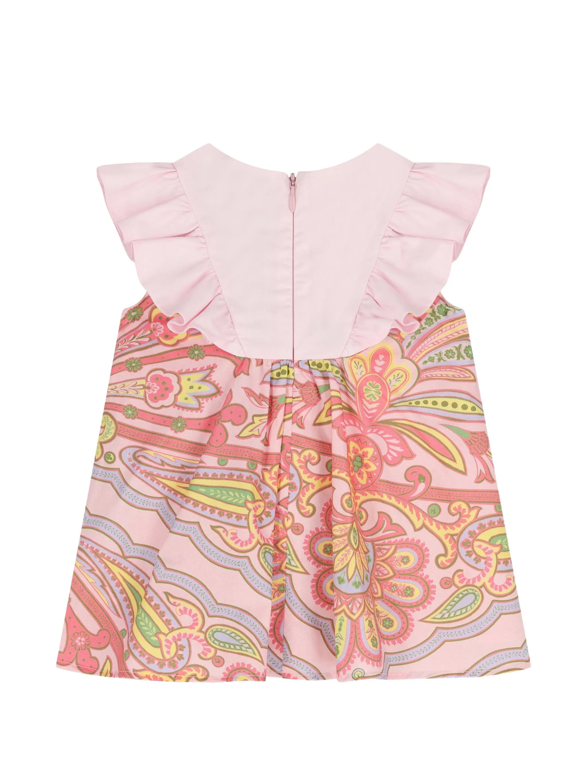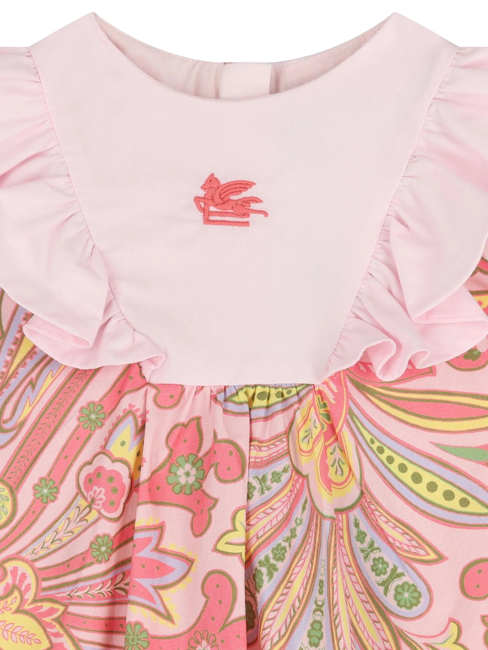 light pink paisley print ruffled finish includes shorts embroidered detail zip fastening