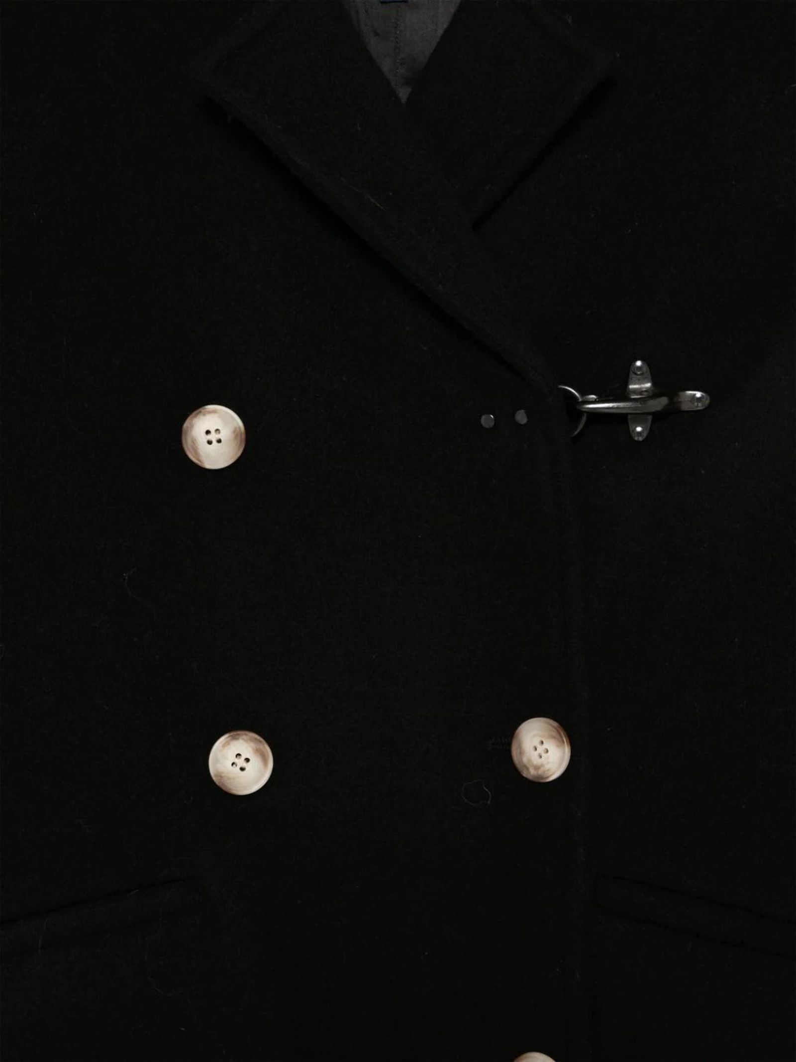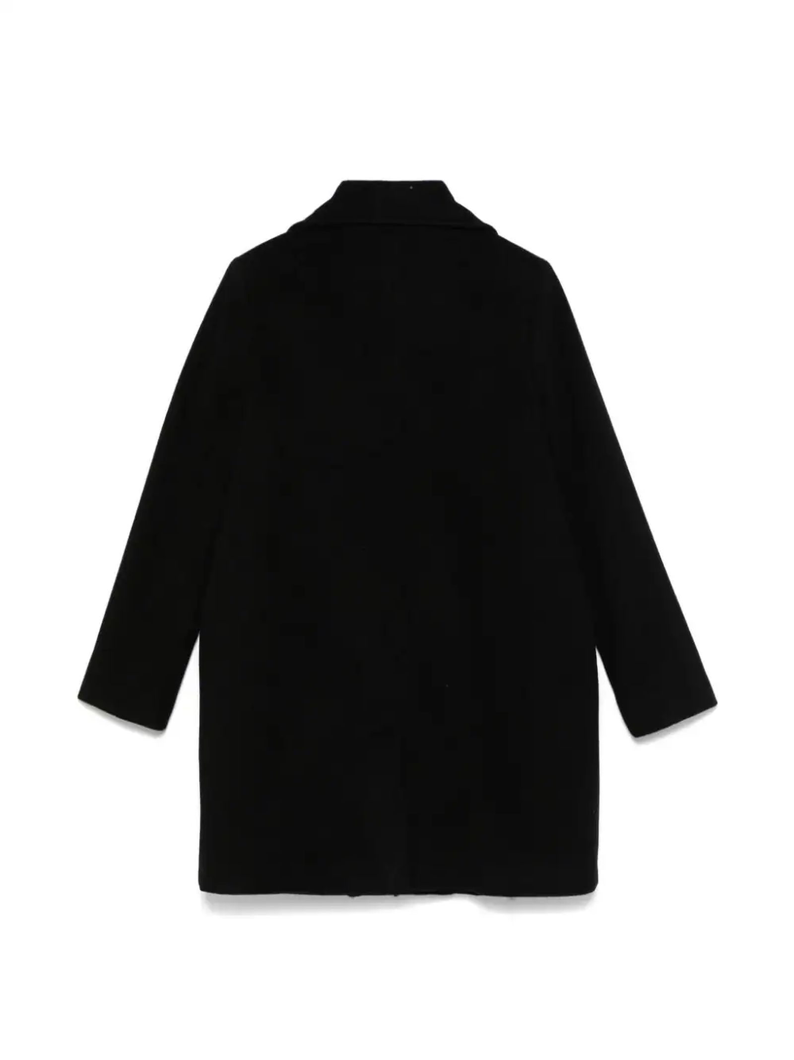 black wool coatvirgin wool blendfelt finishdouble-breasted closure with buttonsfront closure with eyeletclassic lapelslong sleevestwo side welt pocketscentral slit on the backfull liningstraight hem
