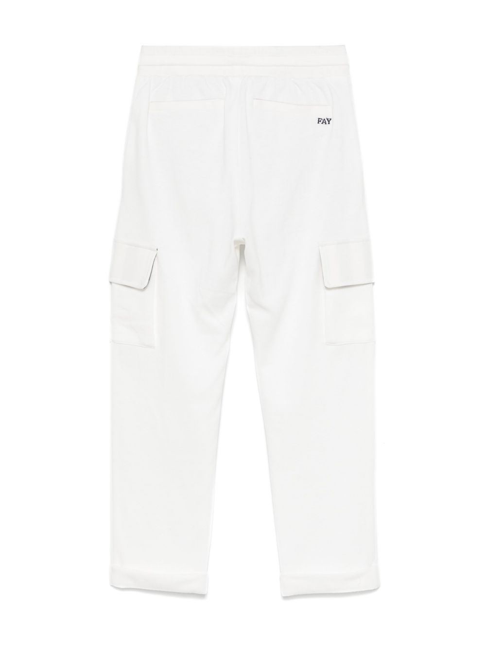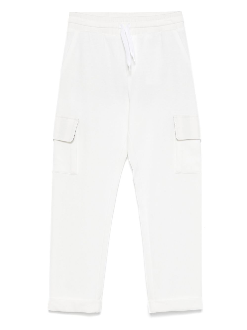 white elasticated drawstring waistband two side inset pockets two side cargo pockets two rear jetted pockets