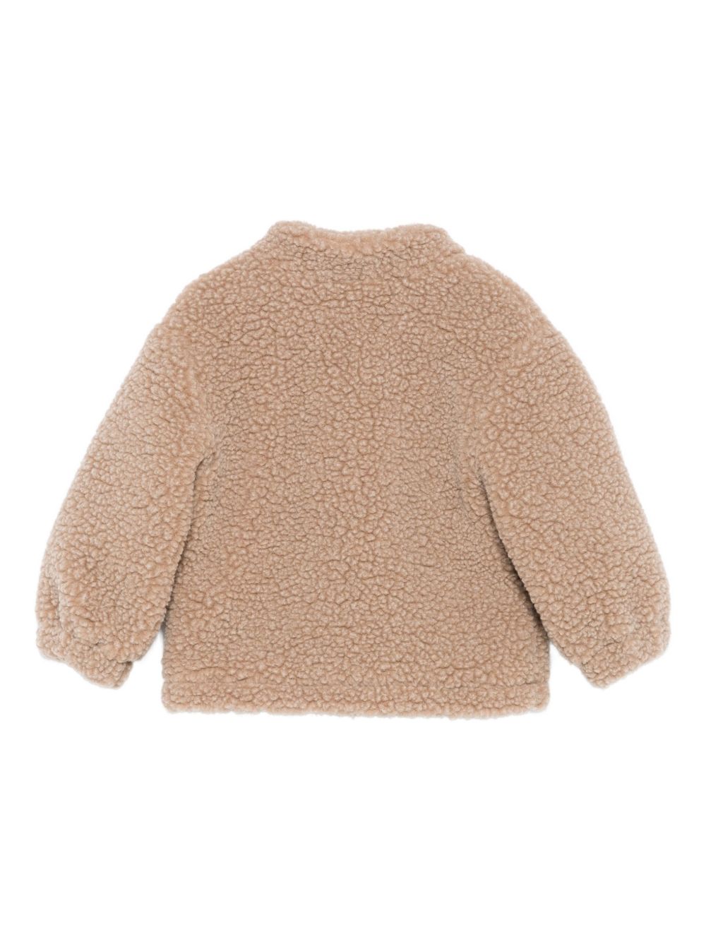 beige teddy texture front zip fastening chest flap pocket long sleeves embroidered logo