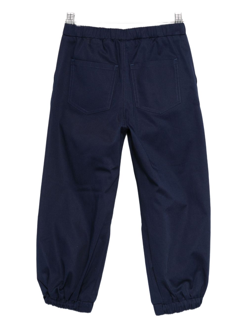 dark blue elasticated cuffs logo embroidery two back pockets front pockets elasticated waistband