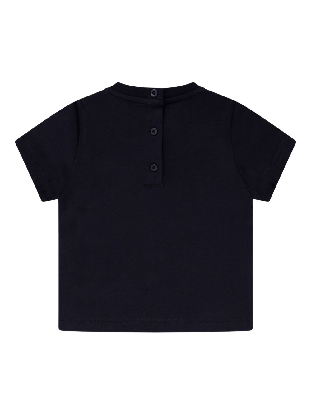 dark blue embroidered logo round neck short sleeves press-stud fastening to the rear