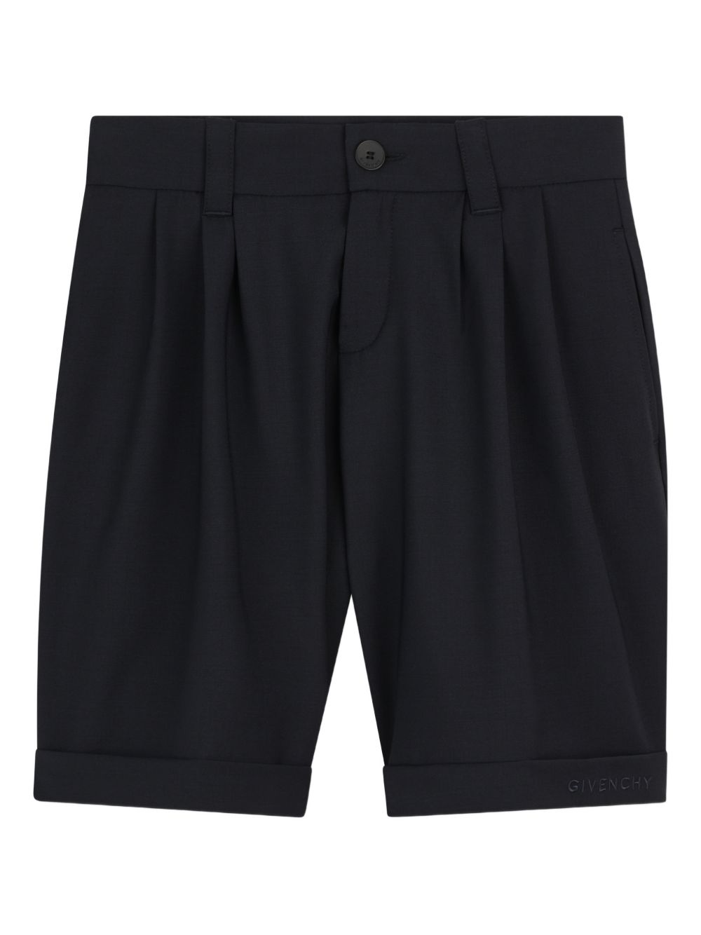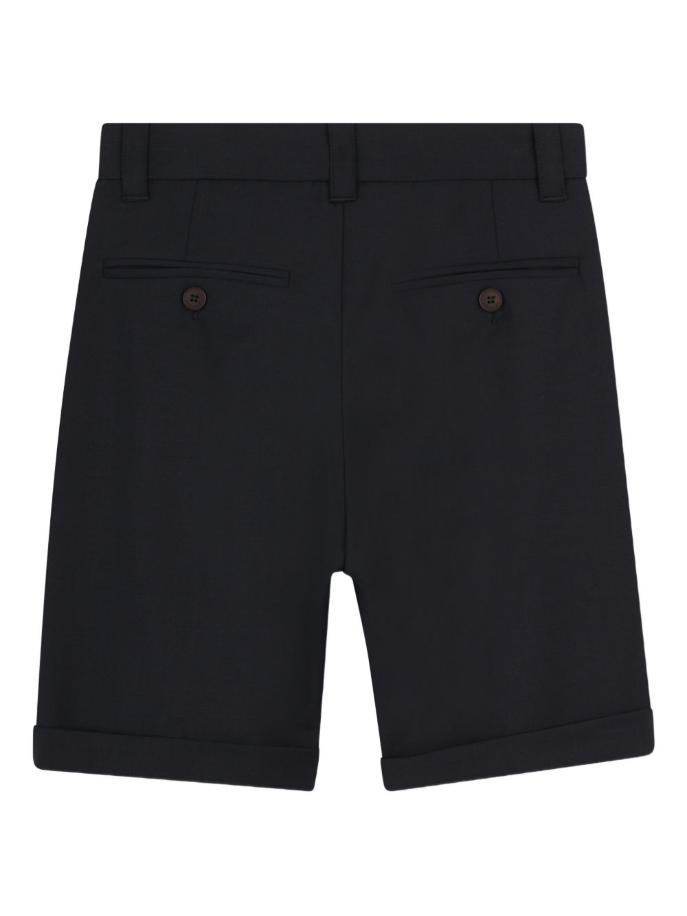 dark blue button fastening belt loops cuffed hem pleated front back button-fastening pockets