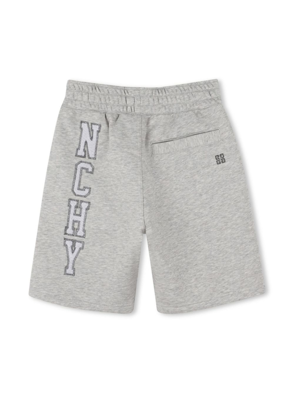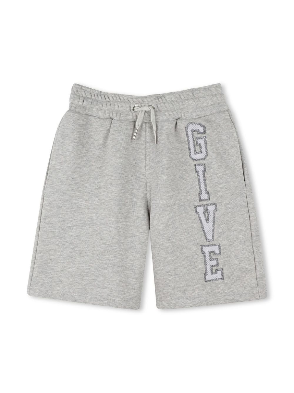 Grey cotton blend shorts, elasticated drawstring waistband, two side inset pockets