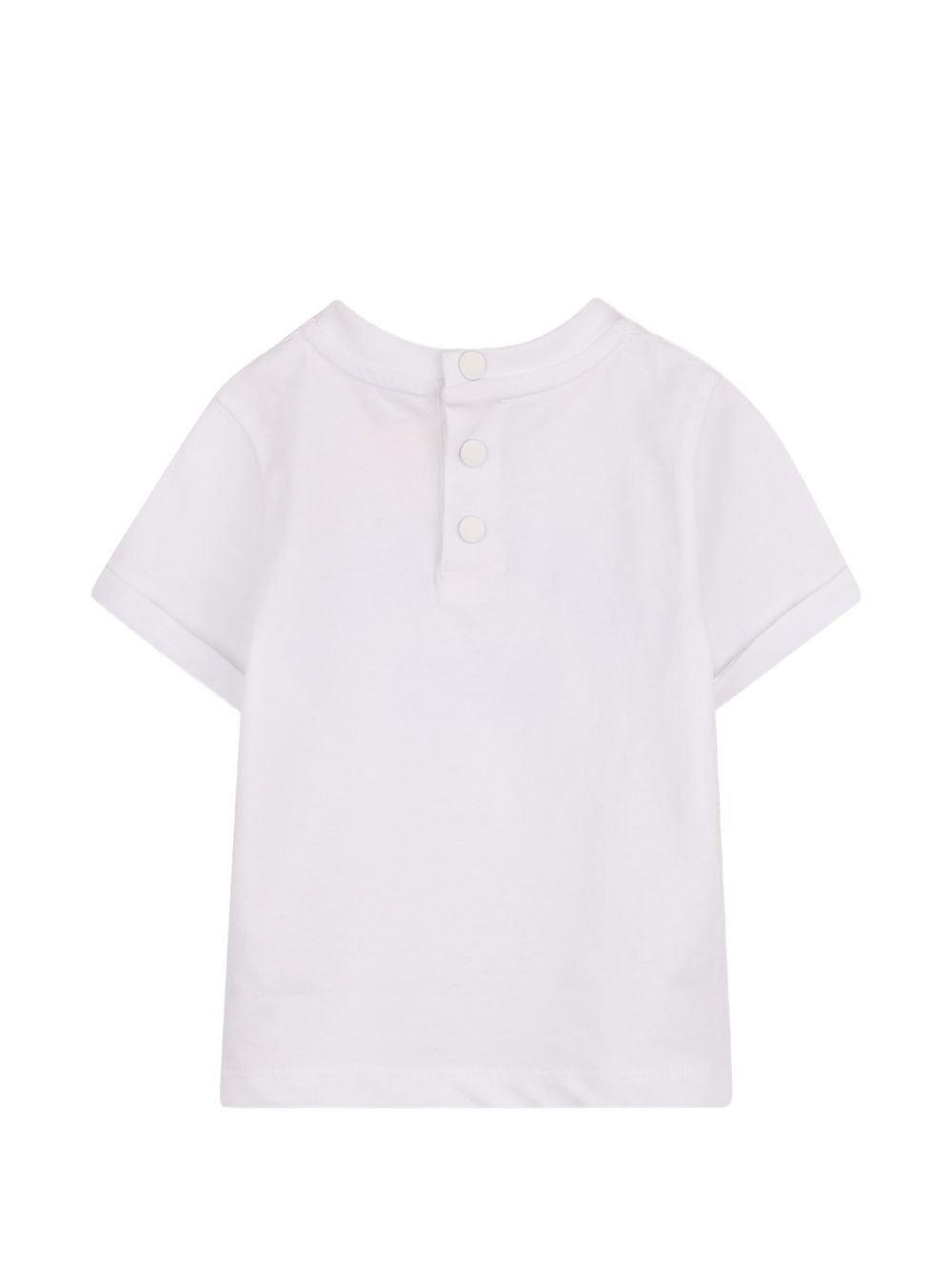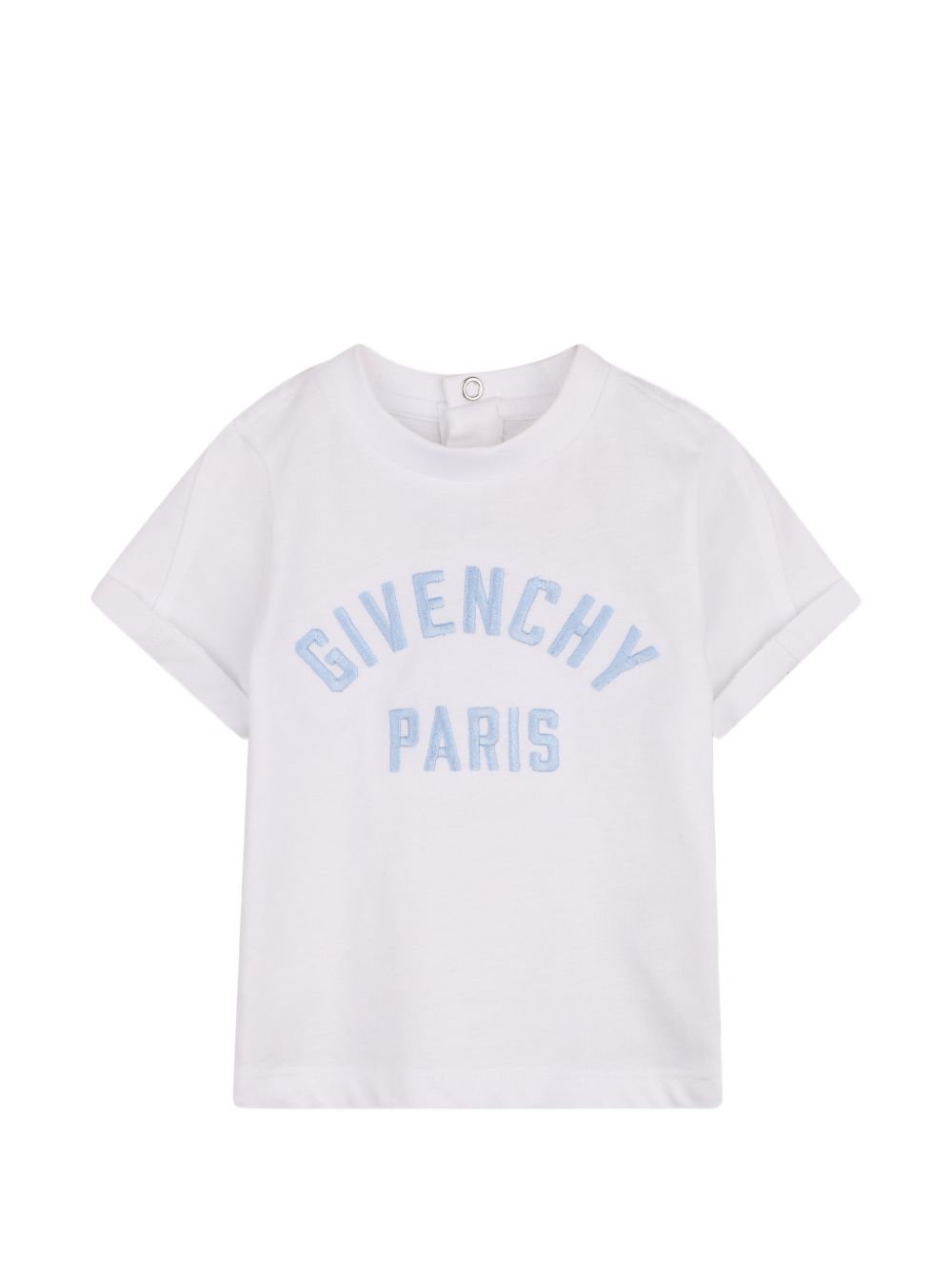 white embroidered detail snap fastening short sleeves turn up cuffs