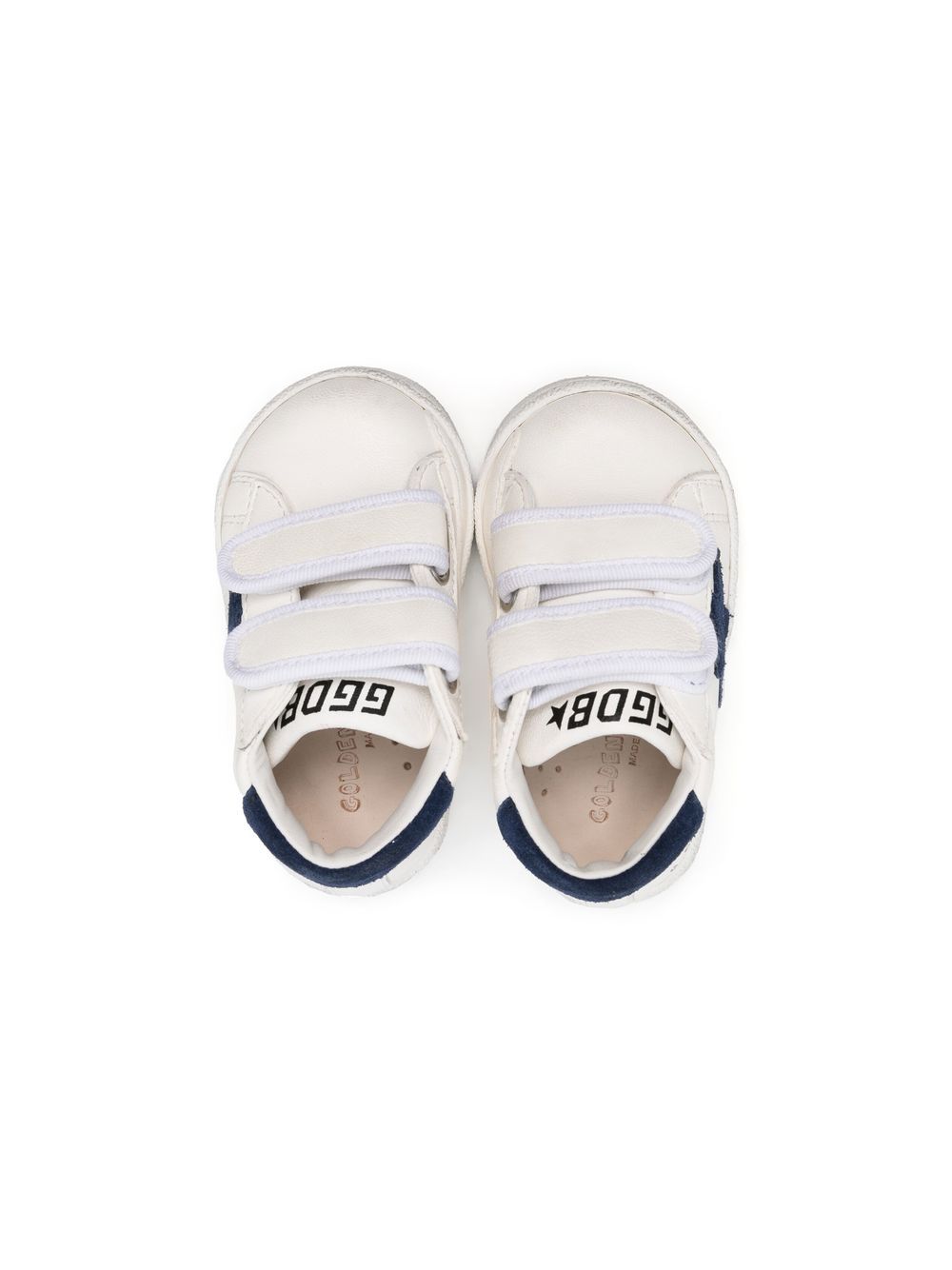 white/navy blue calf leather signature star patch to the sides logo-print tongue round toe front touch-strap fastening flat rubber sole