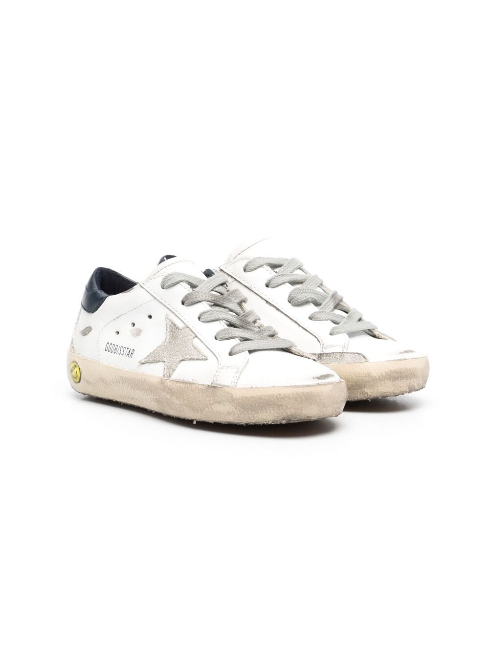 white/ice/navy blue leather star patch detail distressed effect logo patch at the tongue front lace-up fastening round toe flat rubber sole