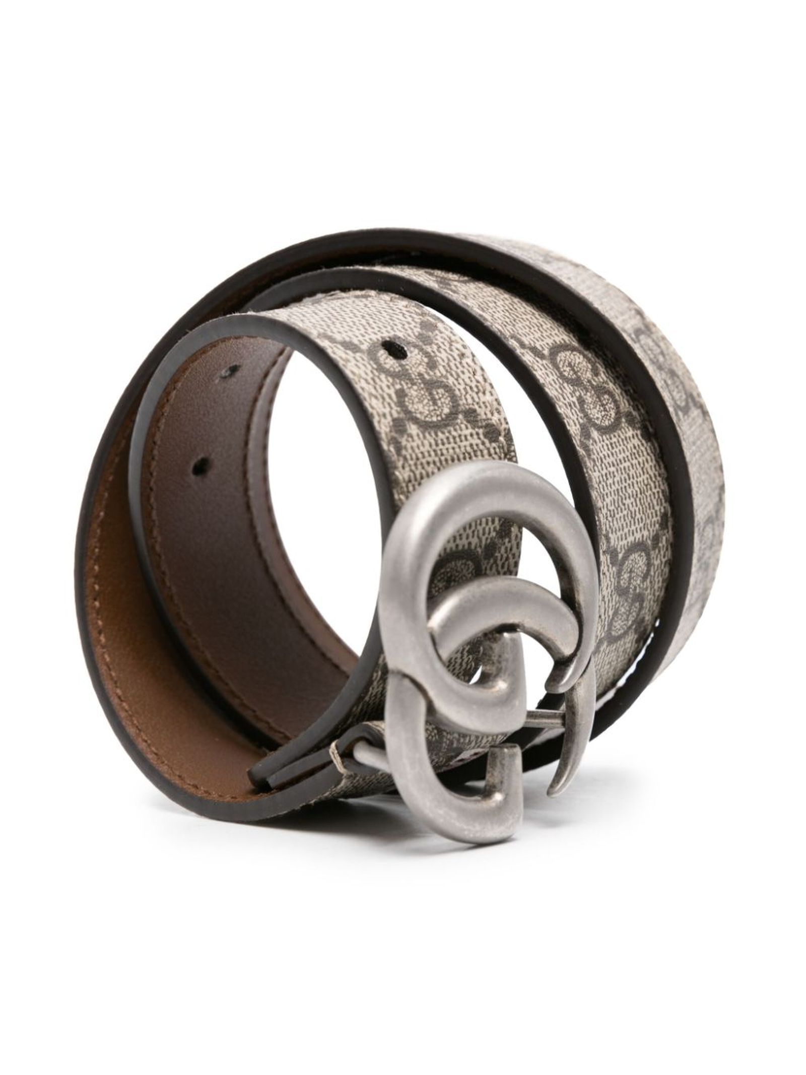 Beige and ebony GG Supreme canvas kids belt, Palladium-toned hardware, Double G buckle, 2.5cm width
