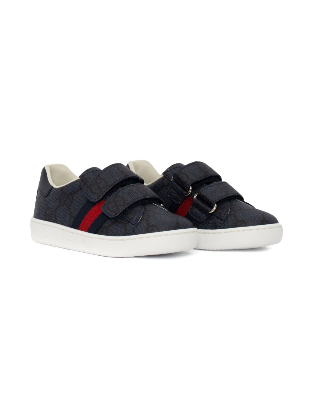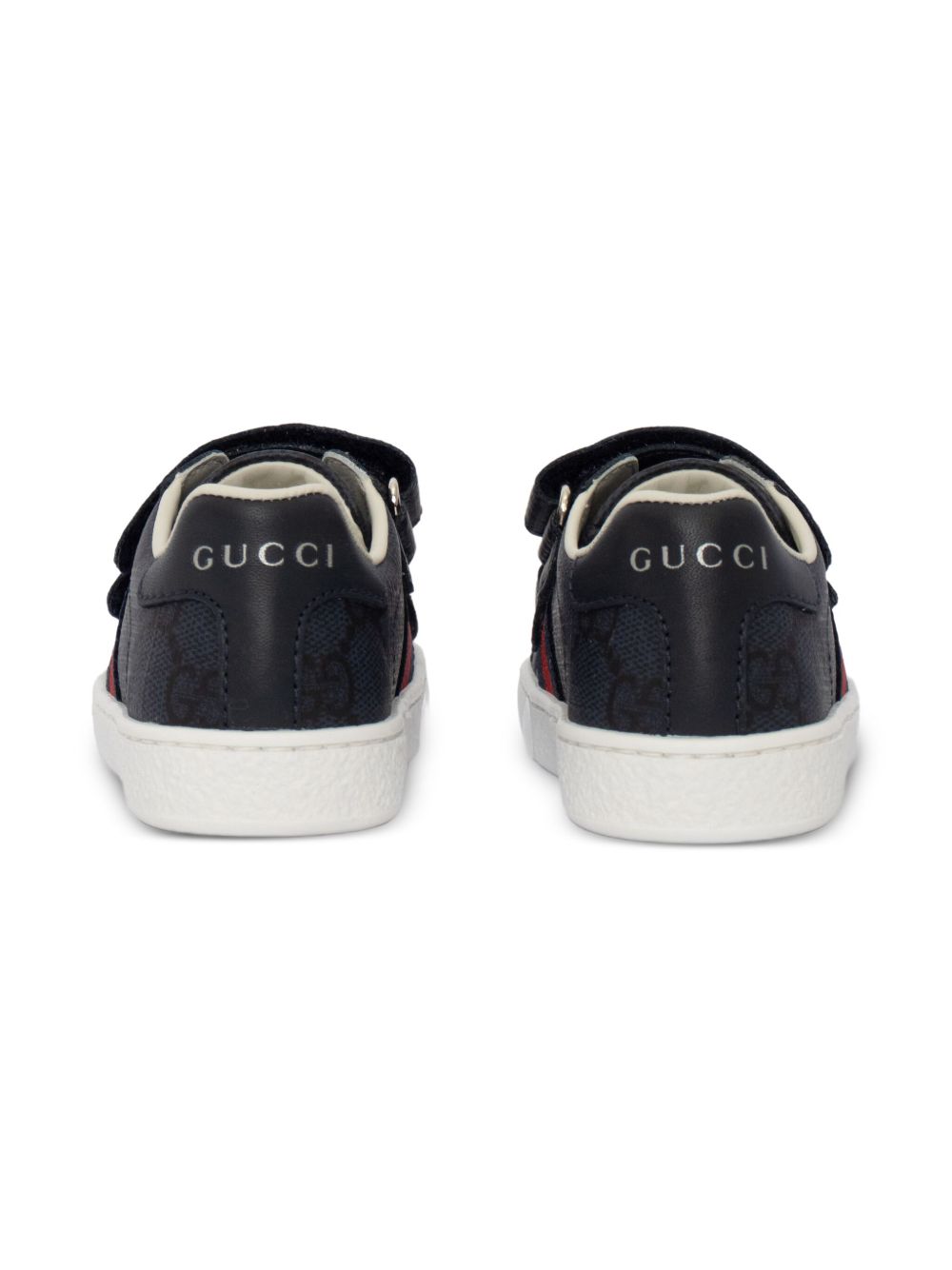 black GG monogram pattern double touch-strap fastening white rubber sole