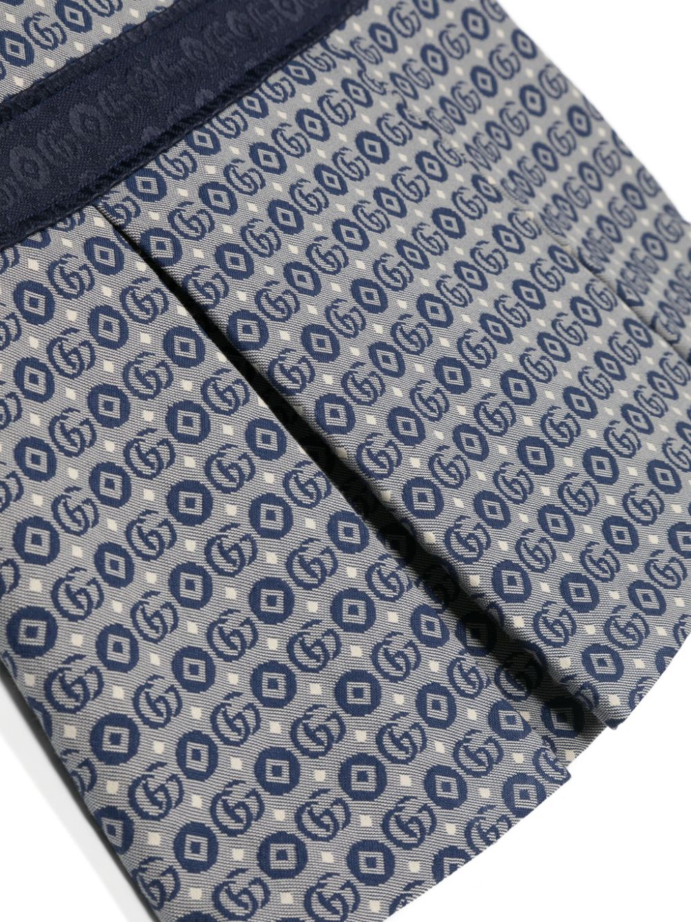 Double G jacquard pleated dress, navy blue, cotton, signature Double G logo, monogram jacquard, V-neck, sleeveless, pleated skirt