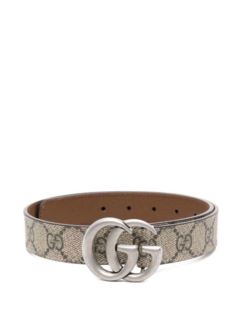 Beige and ebony GG Supreme canvas kids belt, Palladium-toned hardware, Double G buckle, 2.5cm width