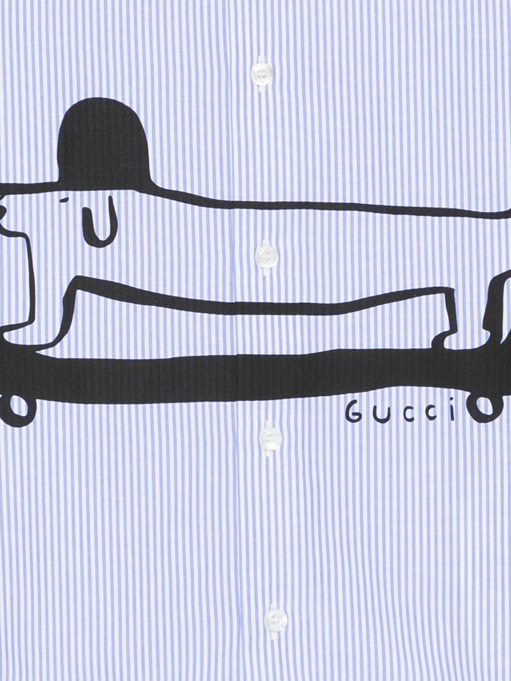 light blue pinstripe pattern dachshund print long sleeves button fastening button-down collar