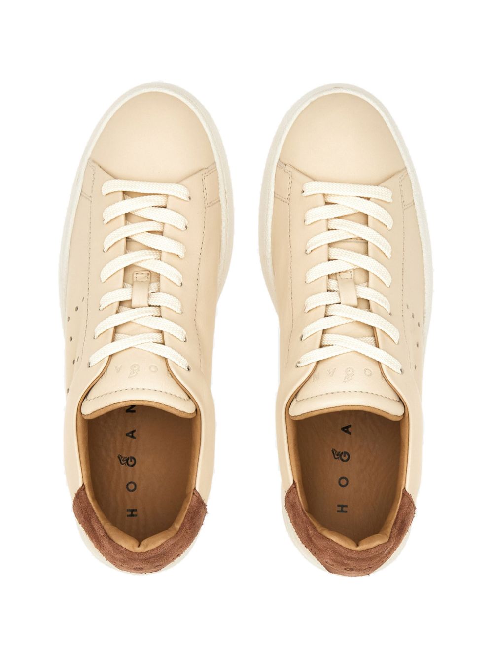 beige h672 hogancalfskininsert designtongue with engraved logoperforated detailcontrasting heel reinforcement with logoround tipfront closure with lacesinsole with logoflat rubber sole